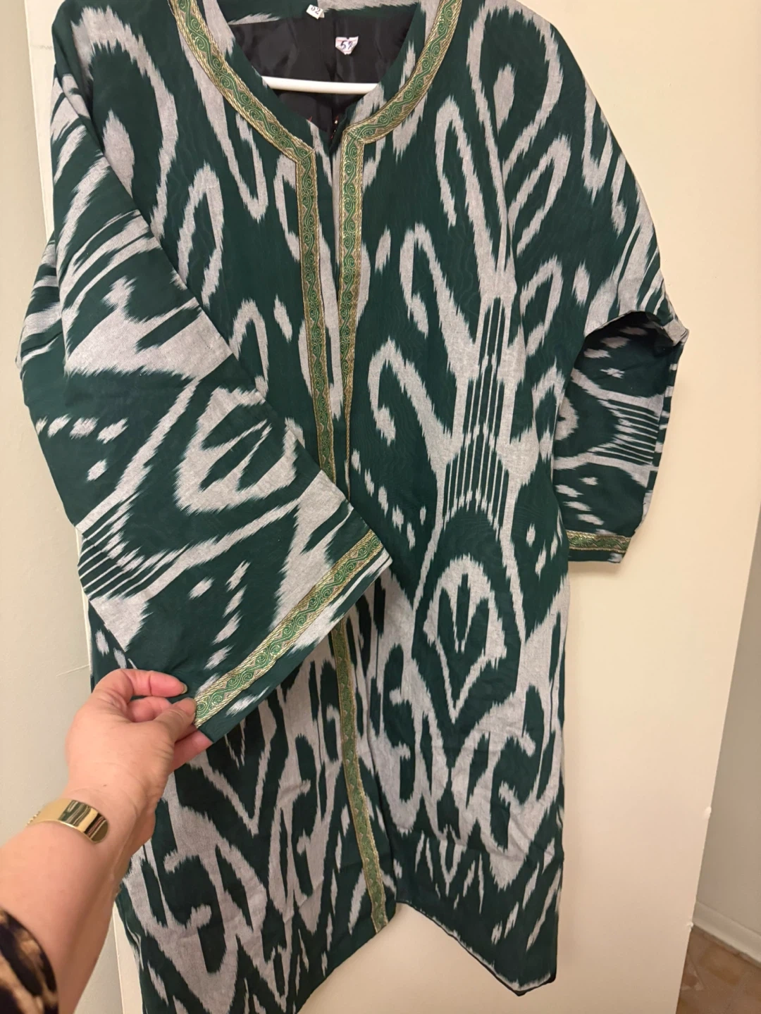 Ikat Print Kimono Jacket - Green & White