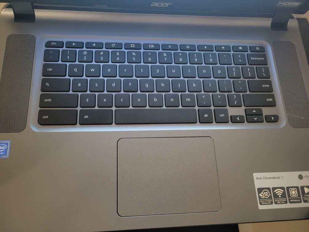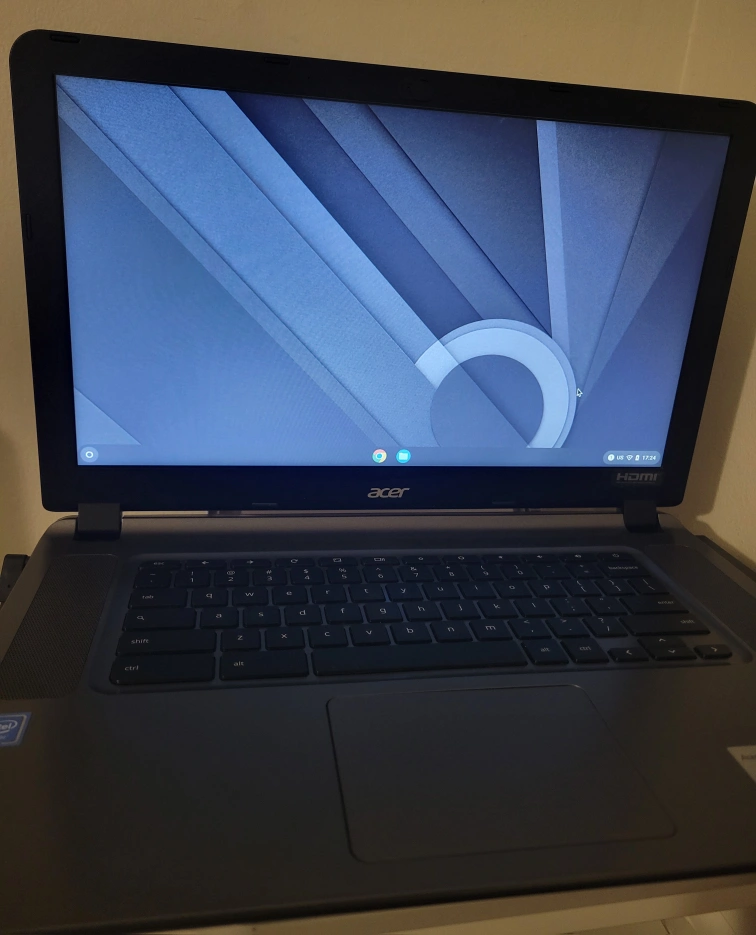 Selling an Acer Chromebook 15 in good condition. It's a great laptop for everyday use and has a comfortable keyboard for typing. Perfect for students or anyone needing a lightweight and portable device!
