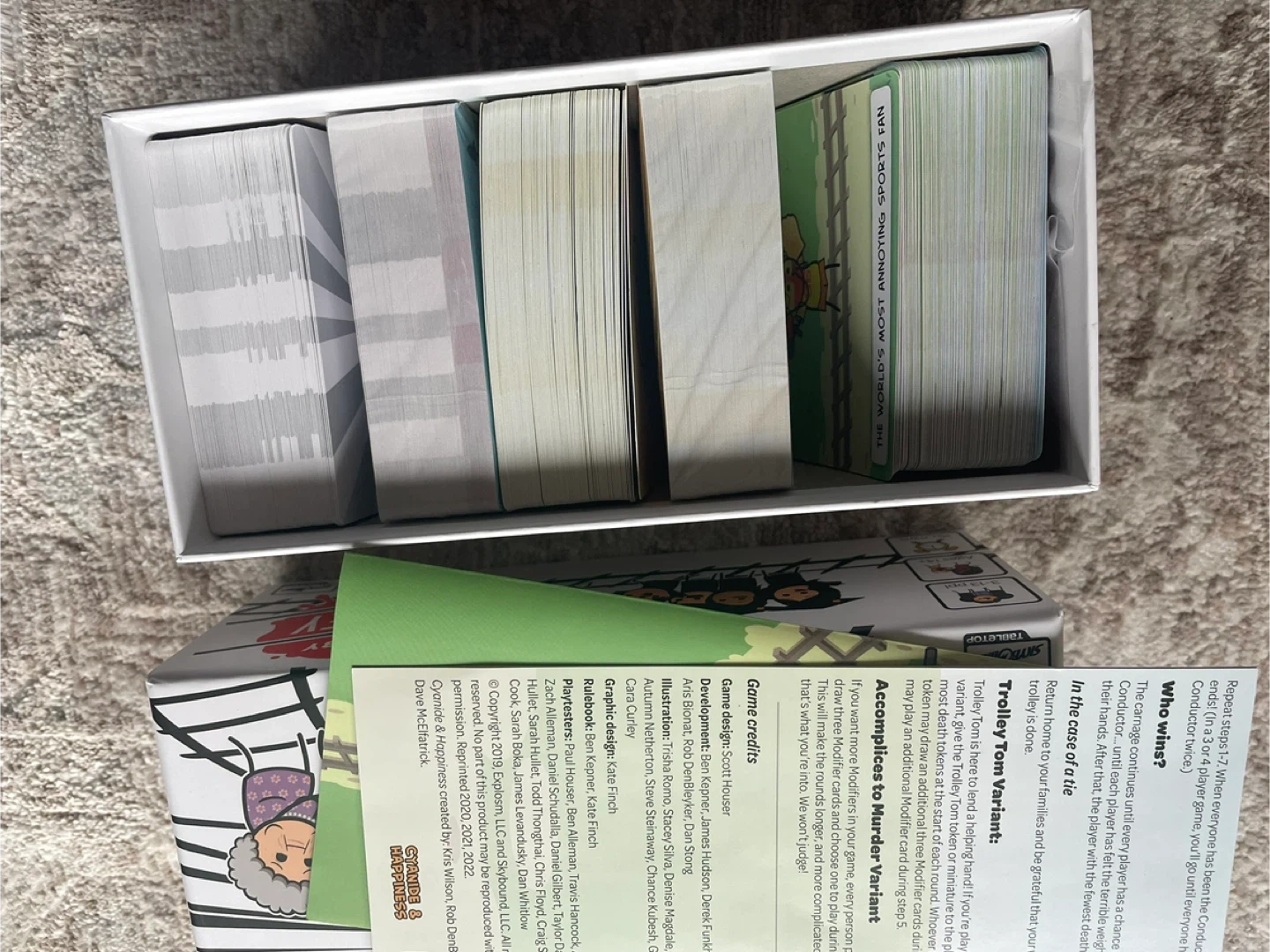 A party game of moral dilemmas and trolley murder. It's for 3-13 players, ages 14+, and takes 15+ minutes to play. This game is sure to spark some hilarious conversations!
