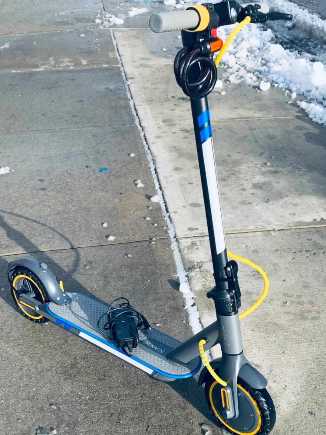 Selling a NAVIG electric scooter run fast strong 30 mph bran new condition used for 2 times only come with charger cruise control system foldable scooter easy to carry bus train come with lock and key high quality scooter heavy duty for adults easy carry 2 people or 400 pounds max come with app download you phone best scooter for make uber eats full charge run for 4 hours best scooter everything work 100% nothing wrong with scooter full working test drive absolutely yes available come with charger ready to drive full charge cash zelle Venmo cash app