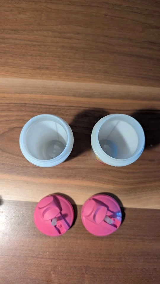 -x2 Playtex pink straw water bottles. Spill proof slide lid.