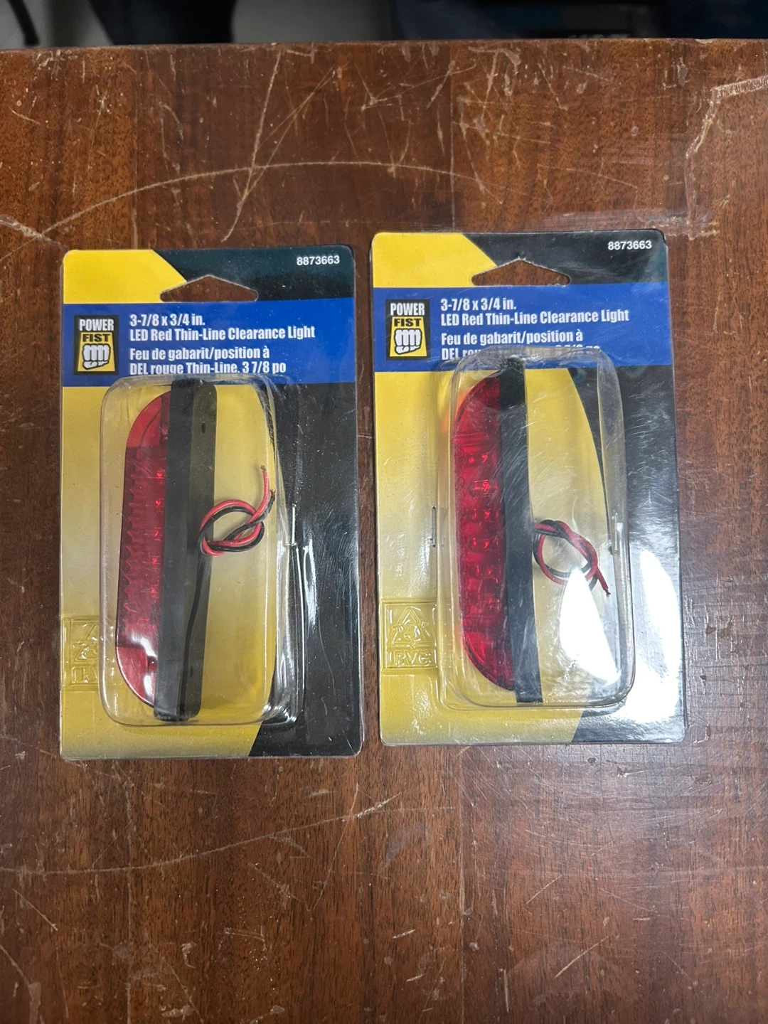 Set of two Power Fist LED Red Thin-Line Clearance Lights. Measures 3-7/8 x 3/4 inches. Each light features 6 LEDs. Perfect for utility trailers and other applications requiring clearance lighting!