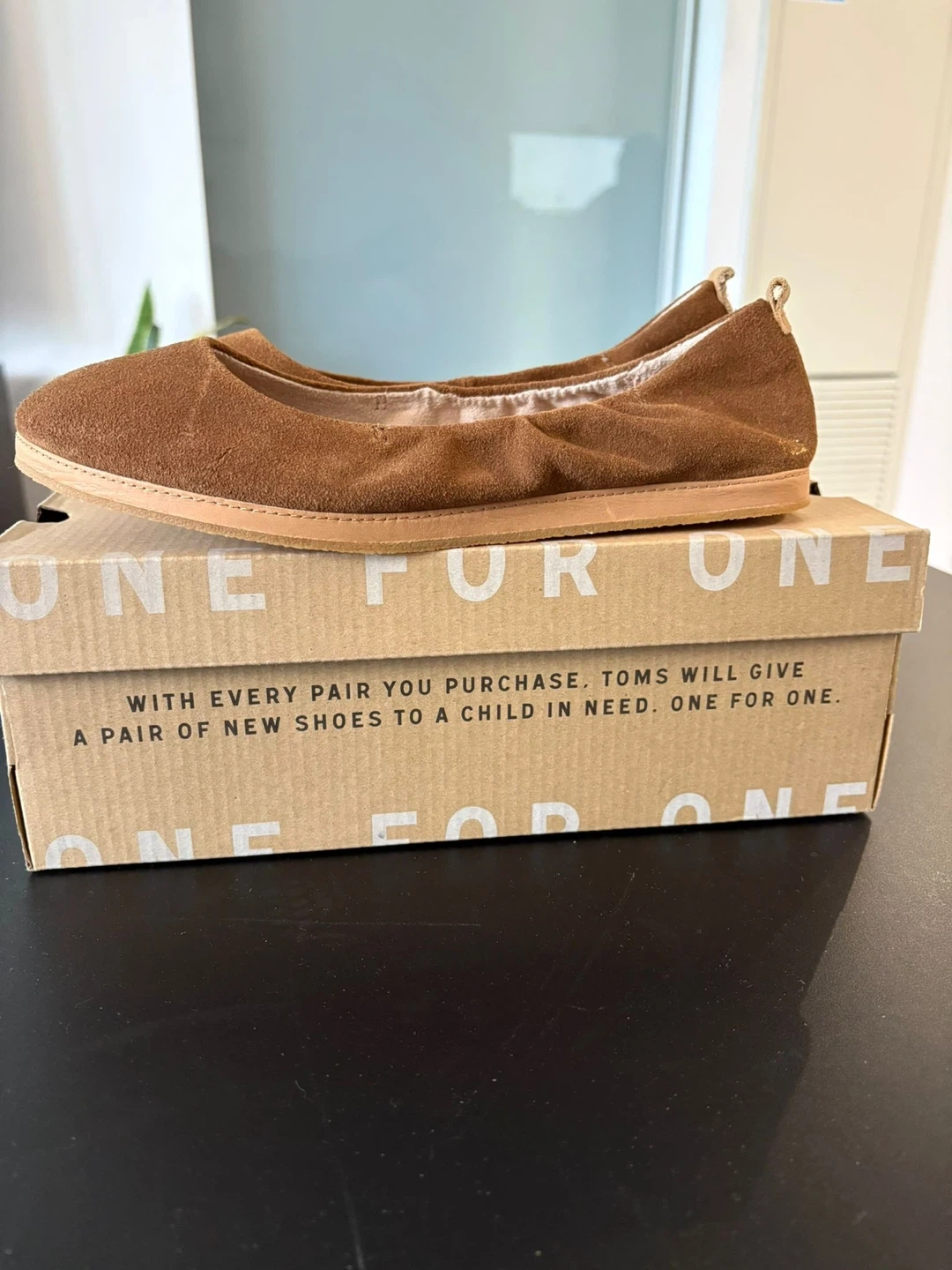 Selling a pair of TOMS Olivia flats in Dark Amber Suede, size Women’s 7.5.