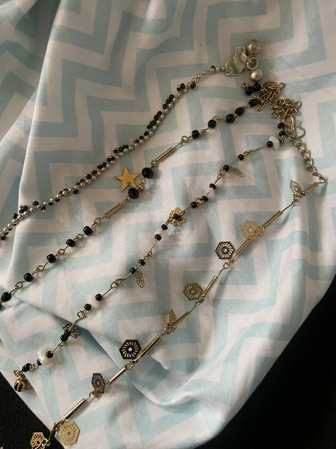 $10 for each 3 different types of beautiful ankle bracelets . Suitable for any fit They feature a mix of beads and metal charms in gold and silver tones. Perfect for adding a little sparkle to your outfit! For more information message or contact simrannsandhu2227@gmail.com