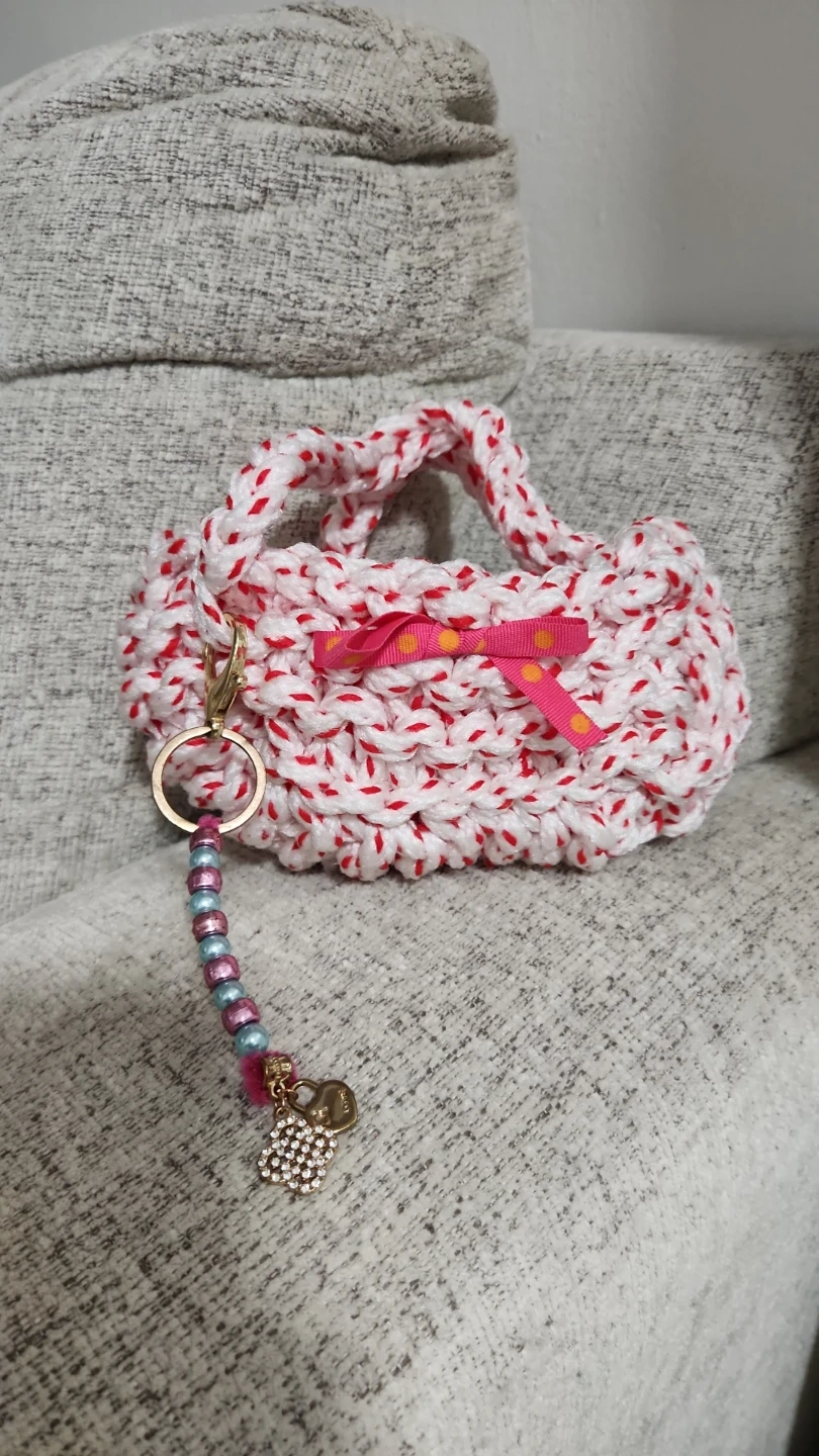 Adorable handmade crochet baby shoes, perfect for tiny feet. Also a cute, small crochet bag with a ribbon accent. Shoes are crafted with soft yarn.