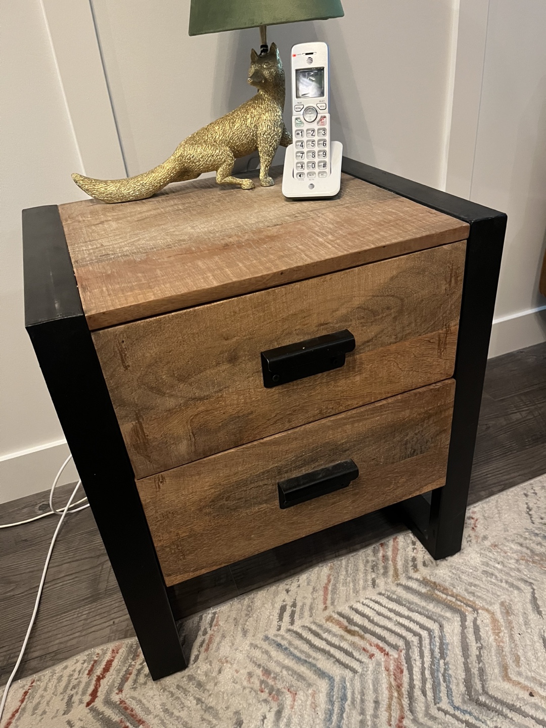 Buy & SellTwo Drawer Nightstand/living roomTwo Drawer Nightstand/living room$80Two drawer nightstand with black metal frame. Wooden top and drawers.ConditionGoodDimensions20x22WHERE TO MEETCheck LocationView MapSELLERDavidGlenora231 review0 chats·0 favorites·46 viewsSEND CHAT TO SELLERHi David! I’m interested in your listing.Hi David! I’m interested in your listing.Get the Karrot app to chatSign In to chat