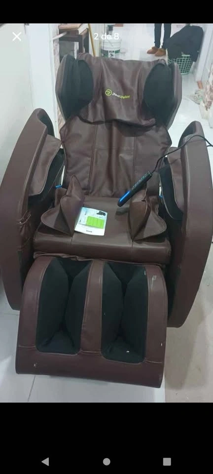 Real Relax Favor-04 Massage Chair. Enjoy full-body massages with lumbar heat, automatic recline, and zero gravity technology. Ideal for relieving stress and muscle tension at home. Features 8 massage rollers and 50 air bags. Easy-to-use control panel.