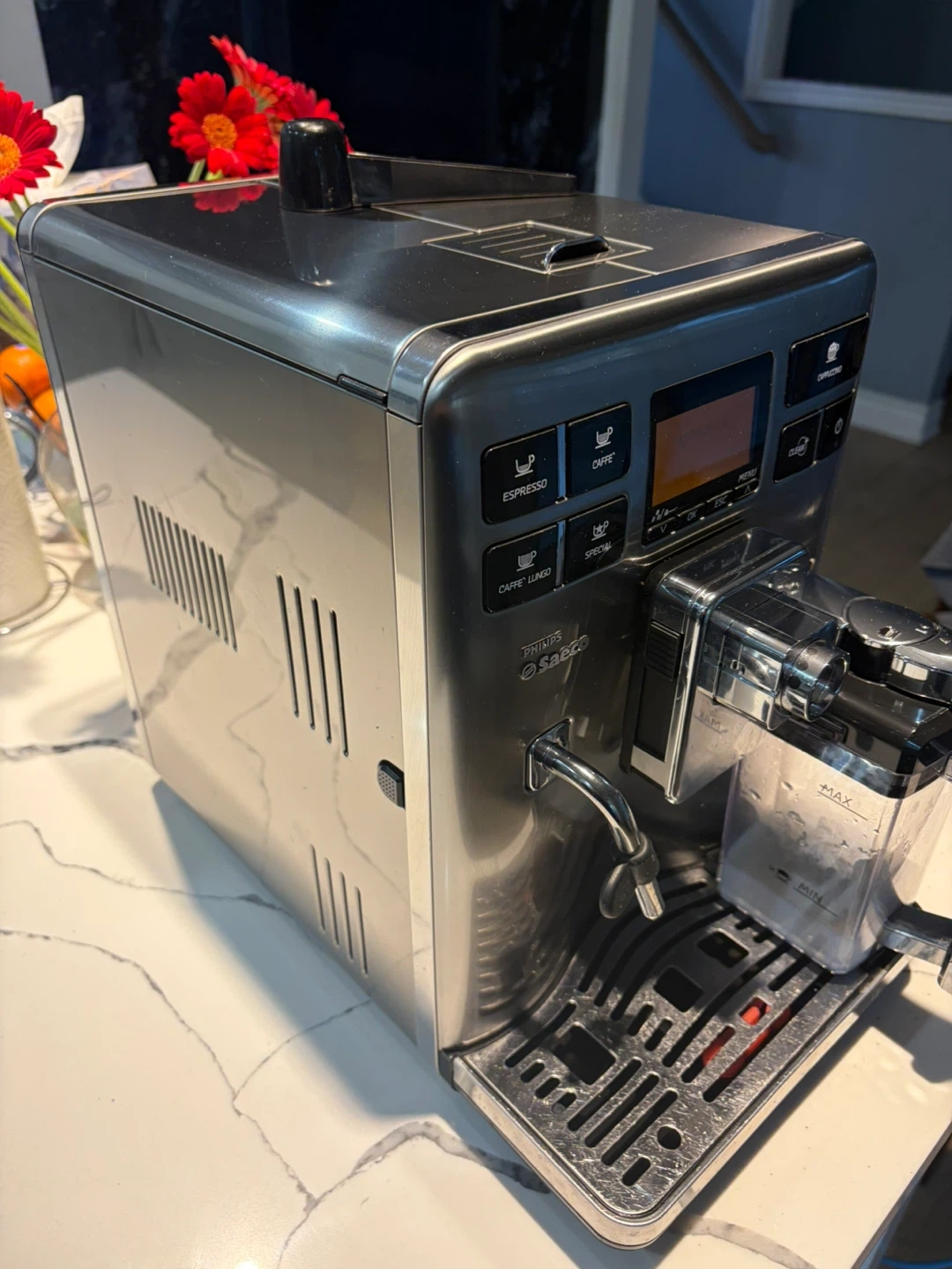 This is a high-end Saeco model made in Italy, known for excellent espresso quality and reliable build. Very easy to maintain with removable brew group.