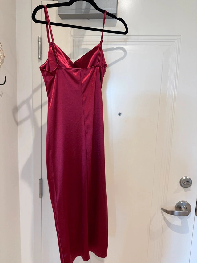 Add a touch of sparkle to your night with this form fitting burgundy satin dress, featuring a bodycon silhouette and shiny material, perfect for turning heads. I'm selling this dress, brand new! Key Features: - Colour: Burgundy - Fit: Bodycon - Material: Satin - Condition: Excellent Looking for a dress that combines elegance with a touch of glamour? This burgundy dress is your go-to choice. Grab it before someone else does! If you see this ad, the dress is still available, so don't hesitate to reach out! Cash only. pick up Quarry Park SE or Mahogany SE so good