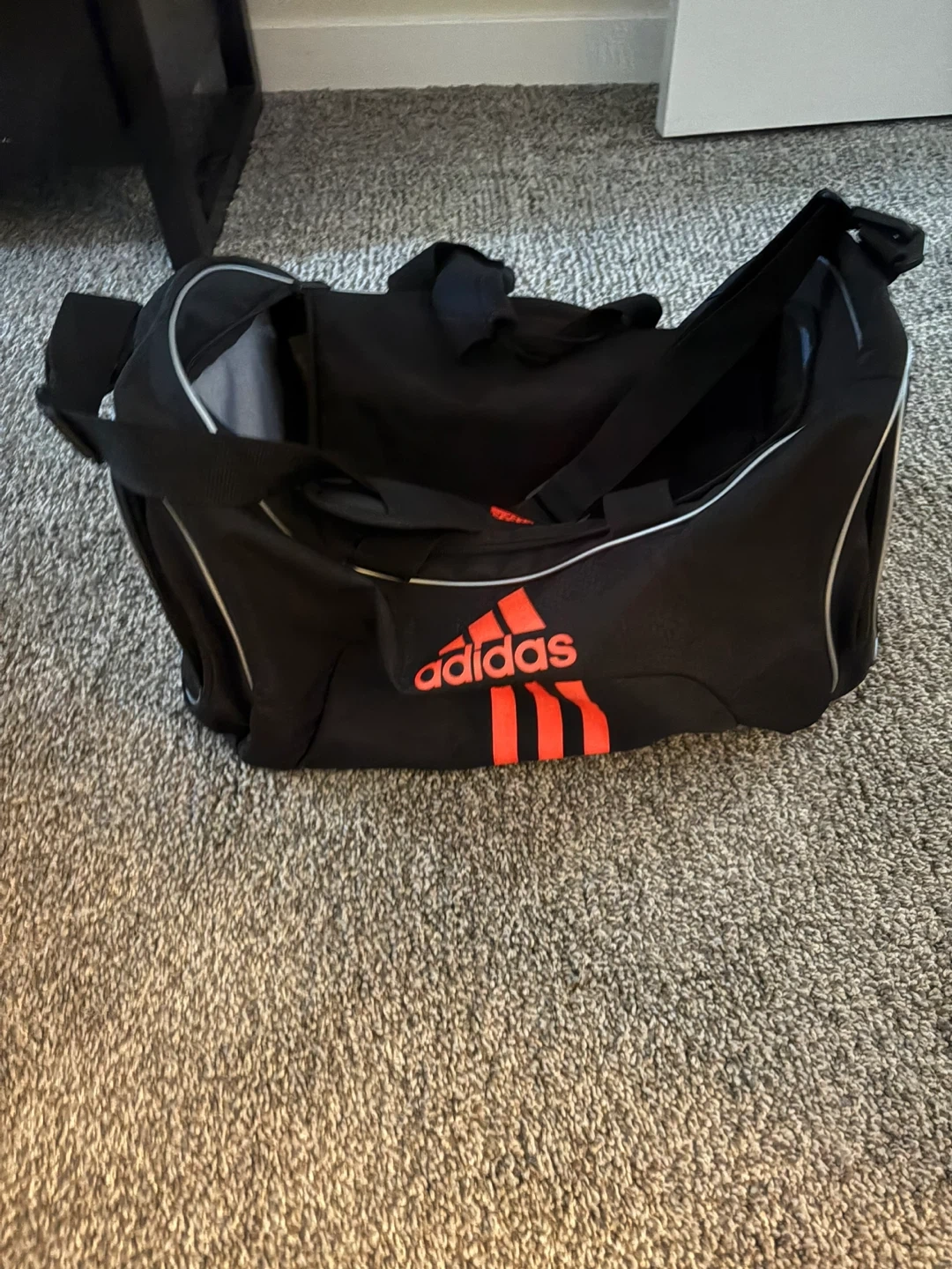 Buy & SellAdidas Duffel BagAdidas Duffel Bag$24Black Adidas duffel bag with red accents. It's a good size for gym or travel. Features adjustable shoulder strap.ConditionNewWHERE TO MEETCheck LocationView MapSELLERTara and LizzieRiver Heights150 reviews0 chats·0 favorites·4 viewsSEND CHAT TO SELLERHi Tara and Lizzie! I’m interested in your listing.Hi Tara and Lizzie! I’m interested in your listing.Get the Karrot app to chatSign In to chat