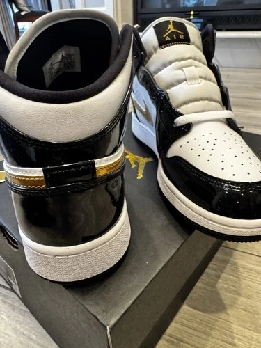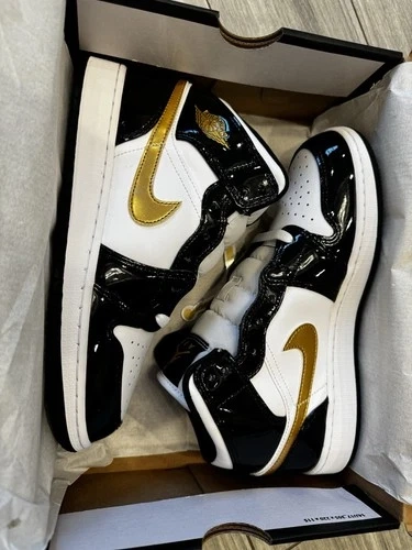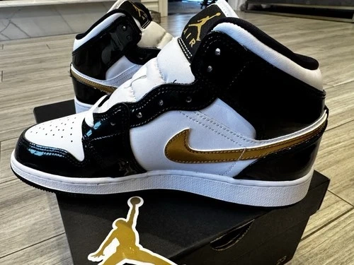 Jordan Air Jordan 1 Mid SE GS Black Metallic Gold White Patent π