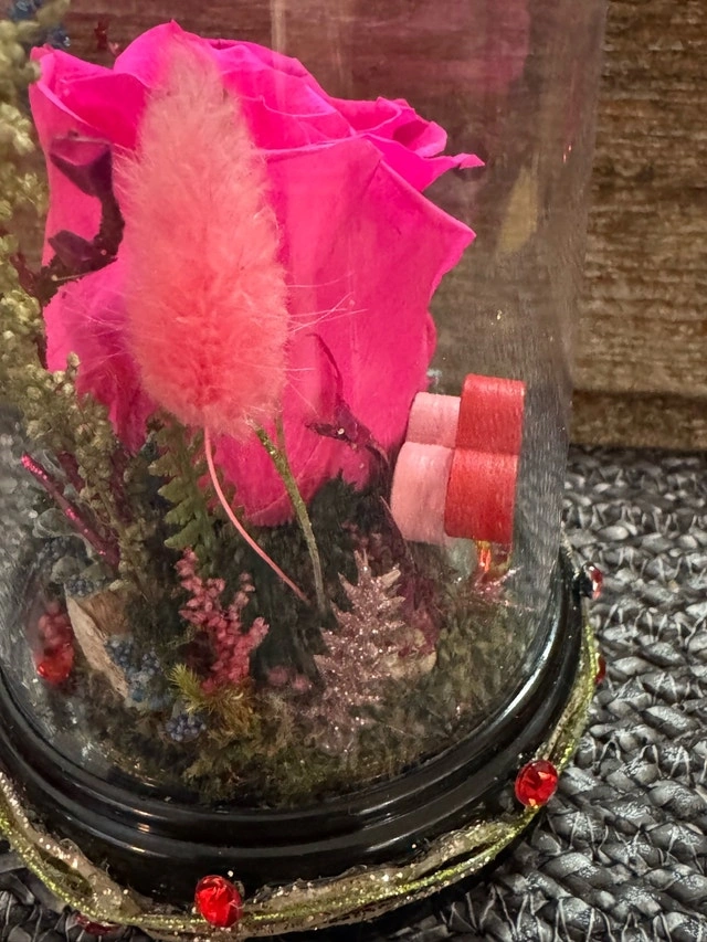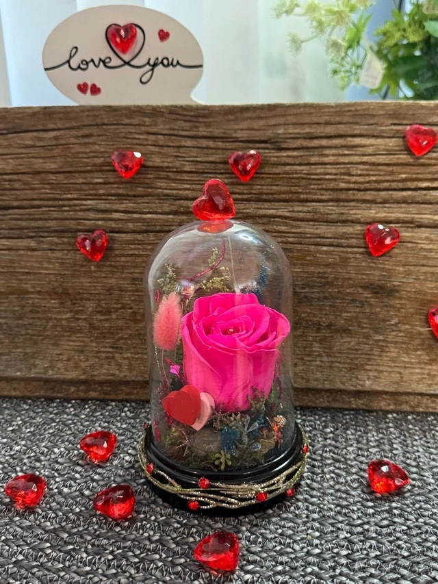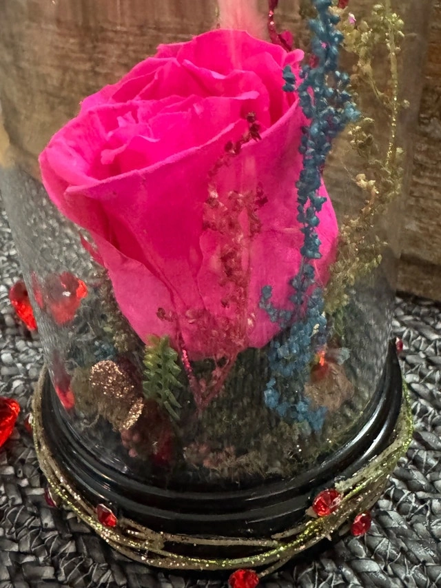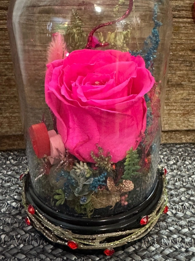 This radiant eternal rose is encased in a cloche, a symbol of everlasting love and beauty. It's a striking piece that captures the essence of romance, perfect for Valentine's Day or for adding a touch of elegance to any space. This beautiful rose is ready to brighten up your home or to gift to someone special. Additional details include: Vibrant pink colour, Acrylic dome, Intricate detailing. Similar items typically sell for $30-$60. Please check my other listings. If the ad is up, it's still available!