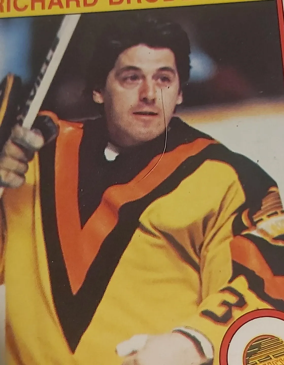 Vintage hockey card featuring Richard Brodeur. It's a collectible item for any hockey fan. The card shows the player in his Vancouver Canucks uniform.