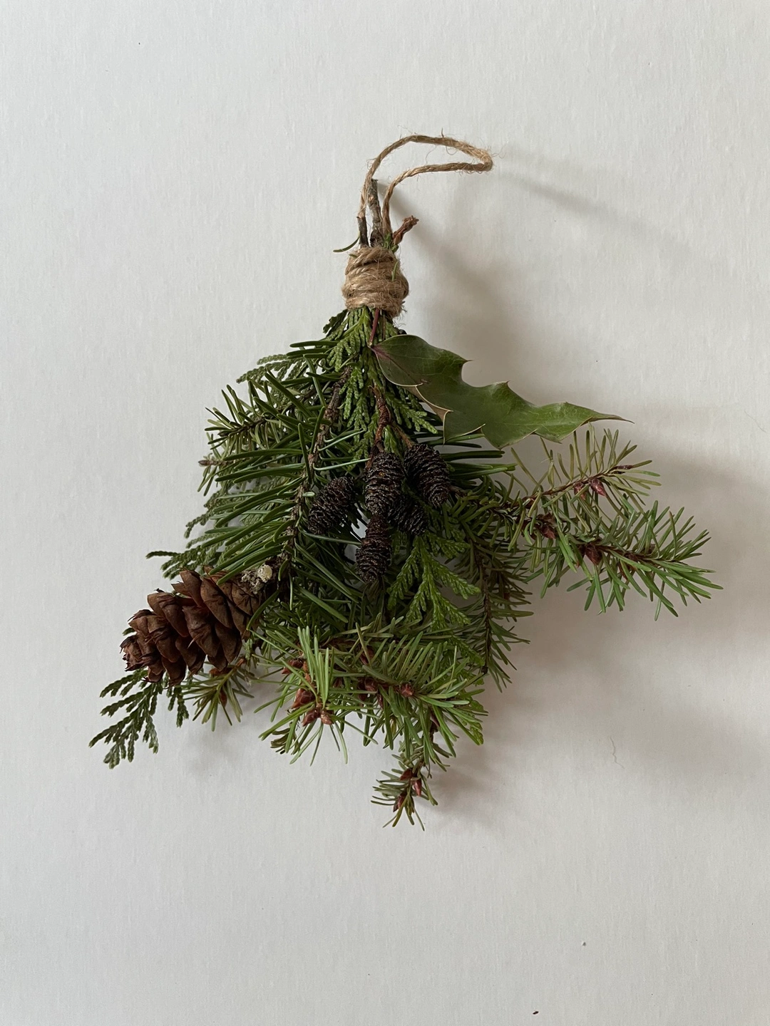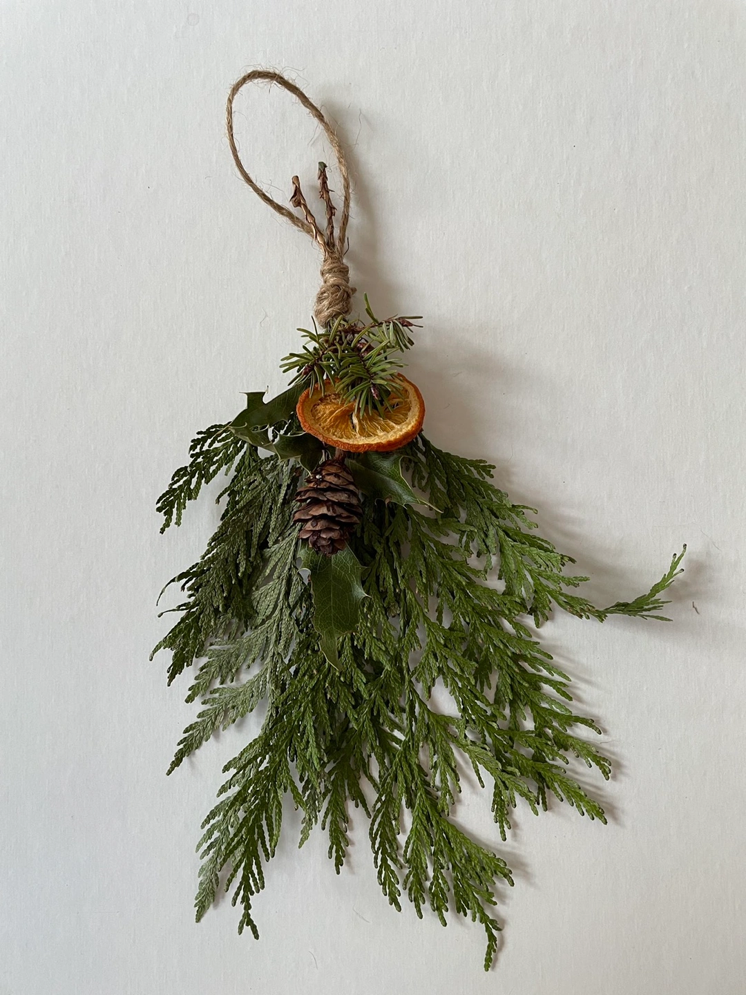 Foraged locally only from pieces found on the forest floor to reduce impact on the forest. They’re a mix of cedars and pines. Some have holly, ferns, pine cones, and dried oranges.