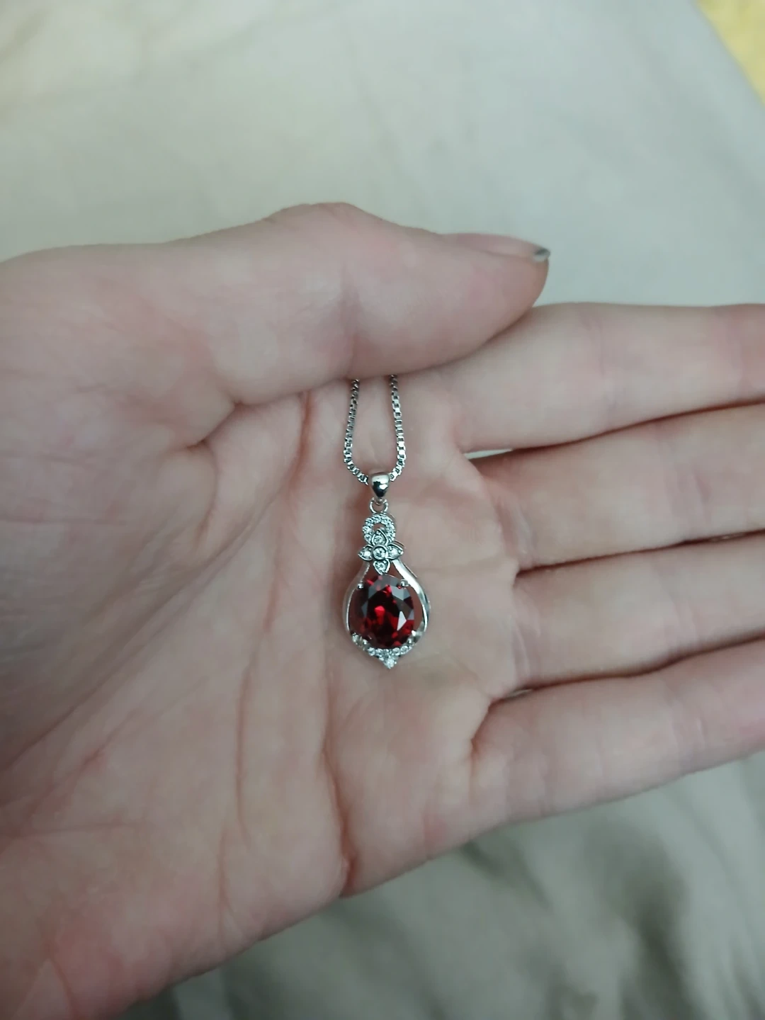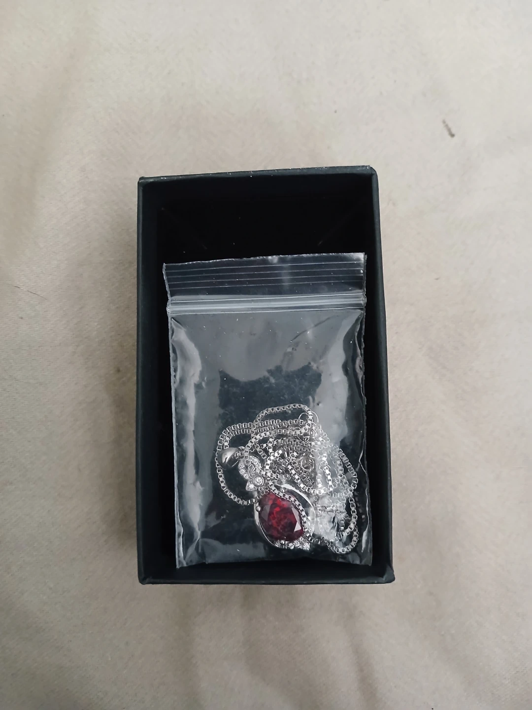 Brand new 925 silver, lab grown ruby, and synthetic zirconia pendant necklace. Cash only. Pick up or meet up in public. Willing to bargain on the price.