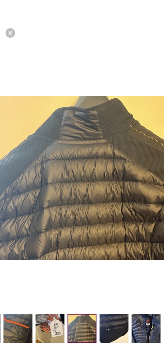 Parajumpers down puffer jacket in black, size XL. It features a full zip closure and multiple pockets. It's a warm and stylish outerwear option. The official name to this jacket is the Jaden hybrid jacket keep in mind that XL fits like a large.