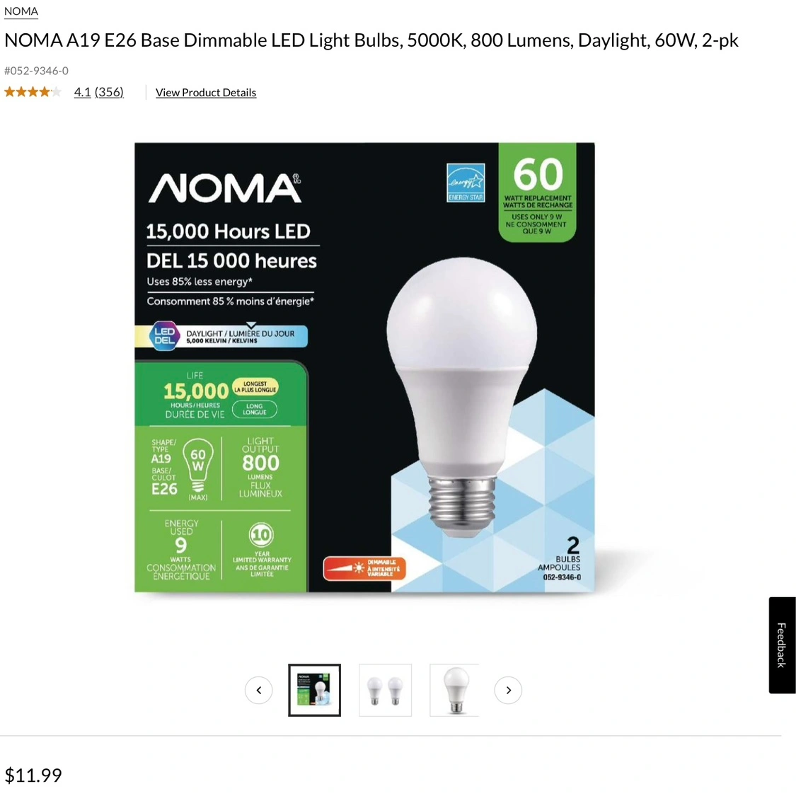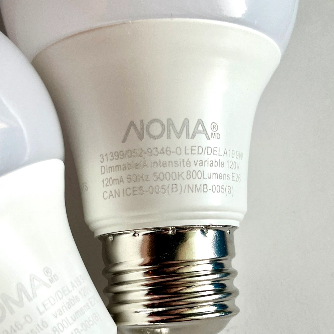They are E26 base, 9W, 800 lumens, 5000K (daylight colour, white), dimmable.