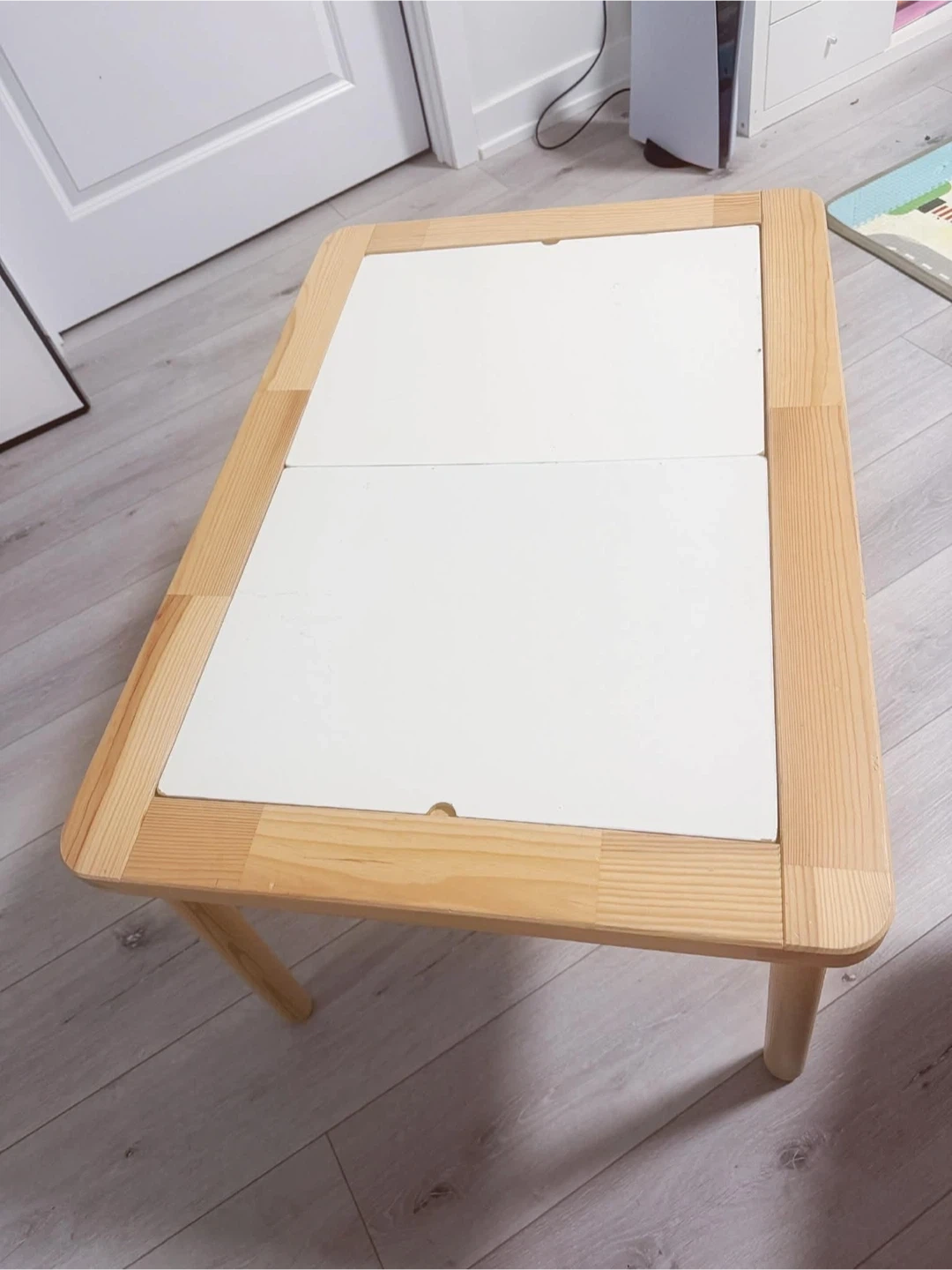 IKEA FLISAT children’s table in very good used condition. Clean, sturdy, and well maintained. Natural solid wood frame with two removable white tabletop panels — great for crafts, drawing, playtime, or sensory activities.