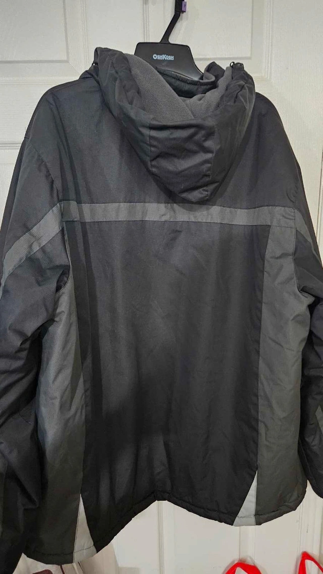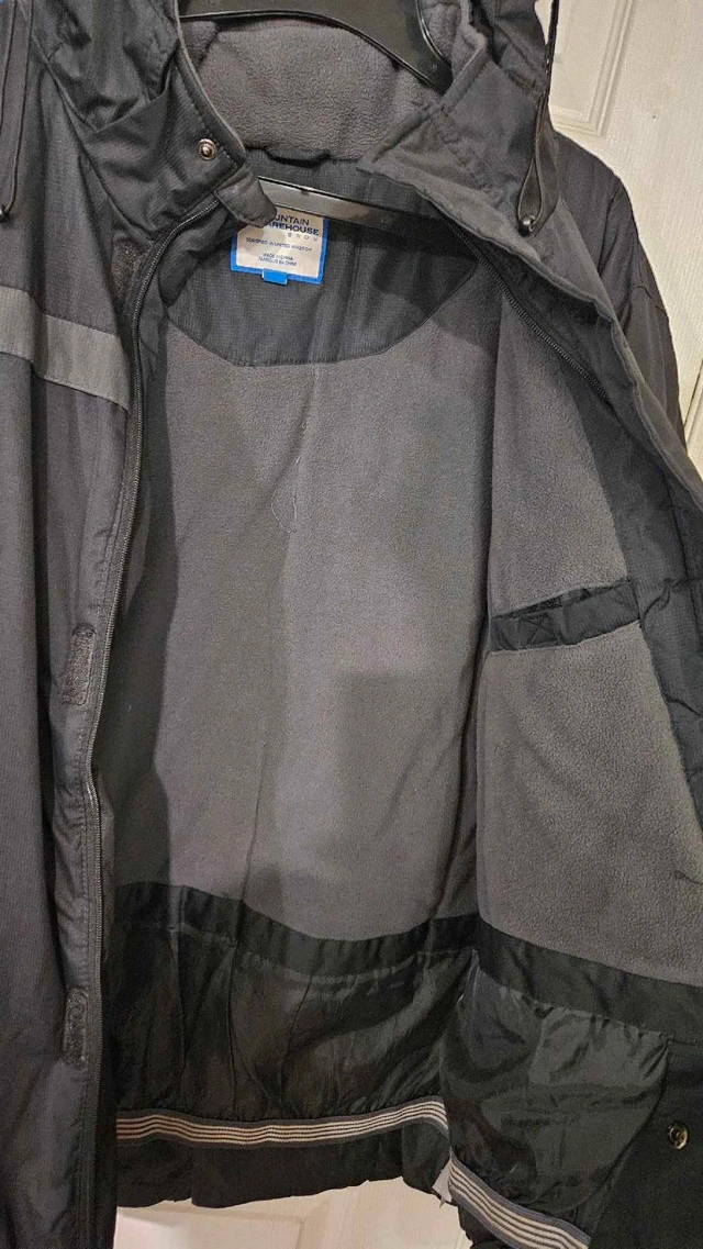 Selling two jackets that are perfect for winter weather conditions! First, a Mountain Warehouse jacket, great for everyday wear, featuring a hood and a comfortable fit. It's in good condition, ready to keep you warm and dry. Secondly, a high-visibility work jacket ideal for outdoor jobs, ensuring you're seen and safe. It also has a hood for extra protection against the elements. This one is also in good condition. Mountain Warehouse Jacket: