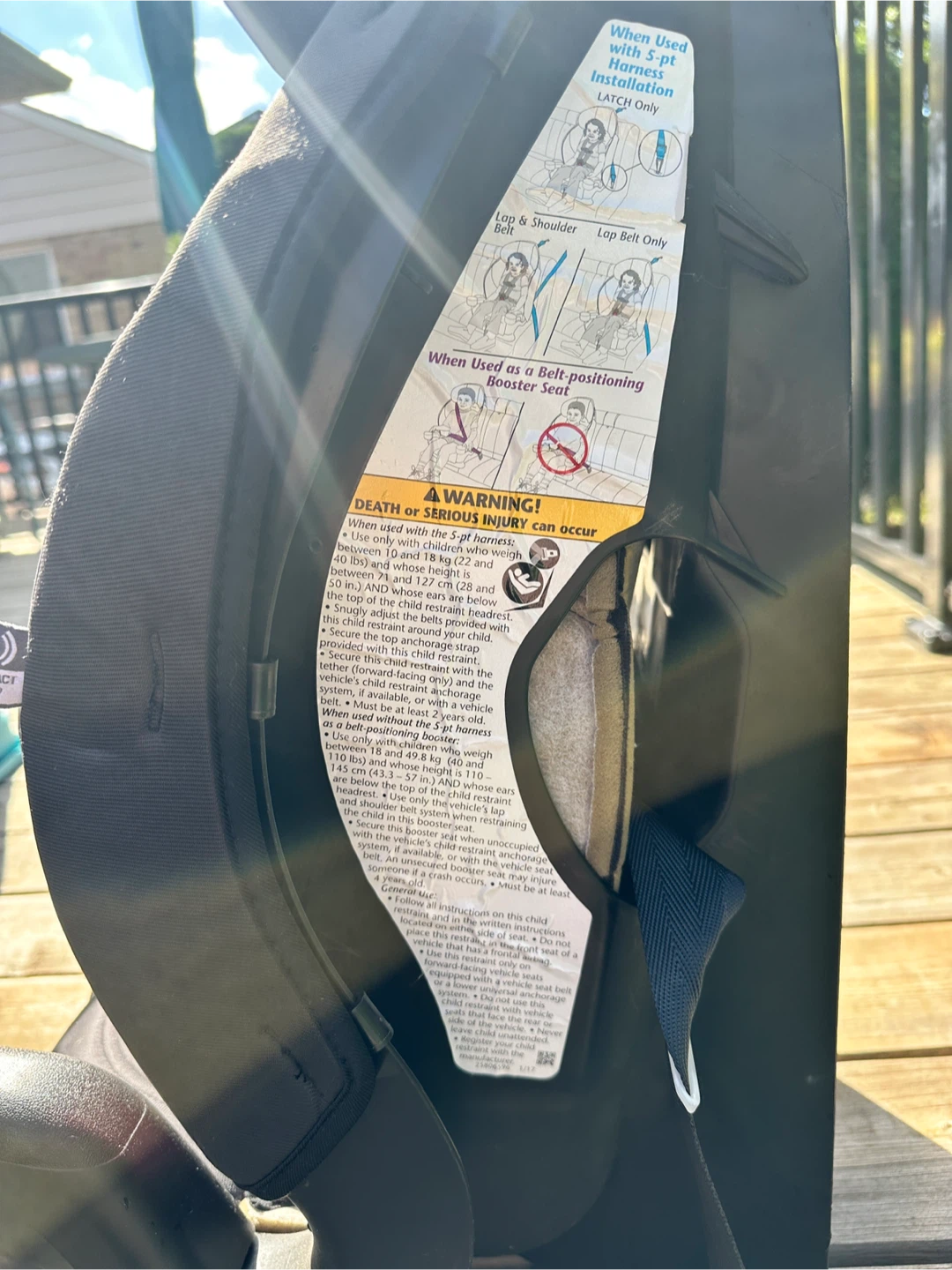Selling an Evenflo Chase car seat in black and pink.