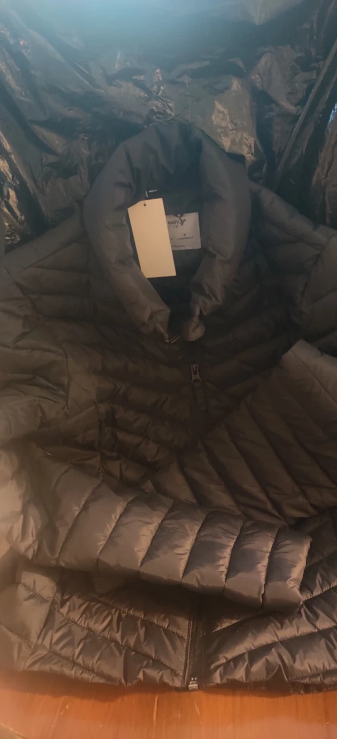 Water-resistant puffer jacket from Old Navy Active. Made in Vietnam. It's a size small.Doesnt have a hood. Great for those not so freezing days
