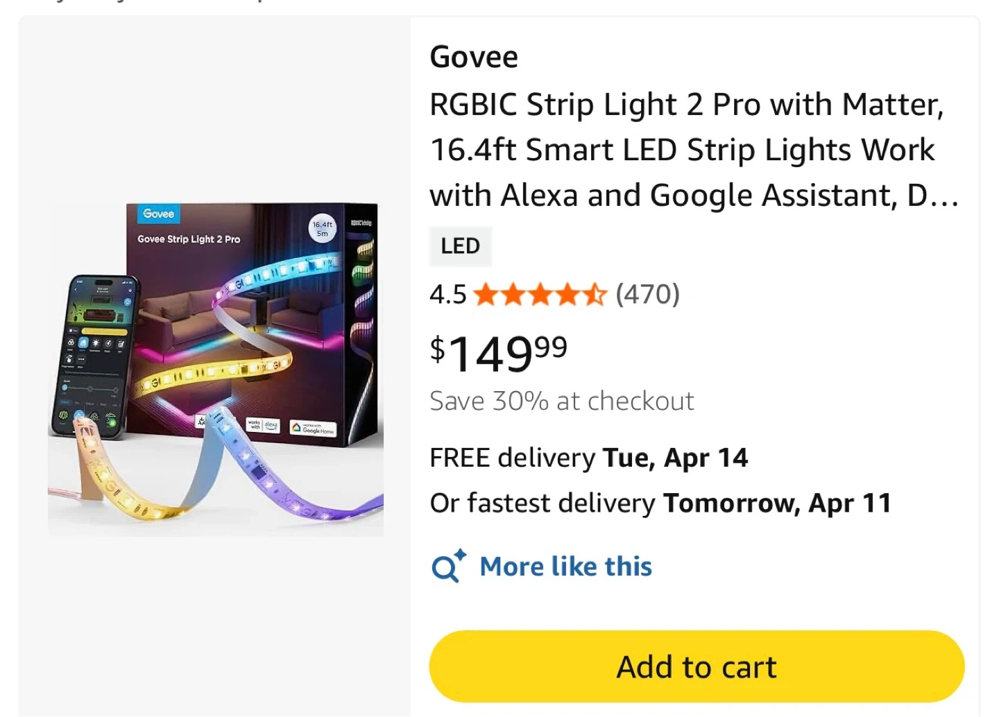 This is a Govee RGBIC Smart LED Strip Light 2 Pro, measuring 16.4ft. It comes with the original box and all included components. It's compatible with Matter, Alexa, and Google Assistant.