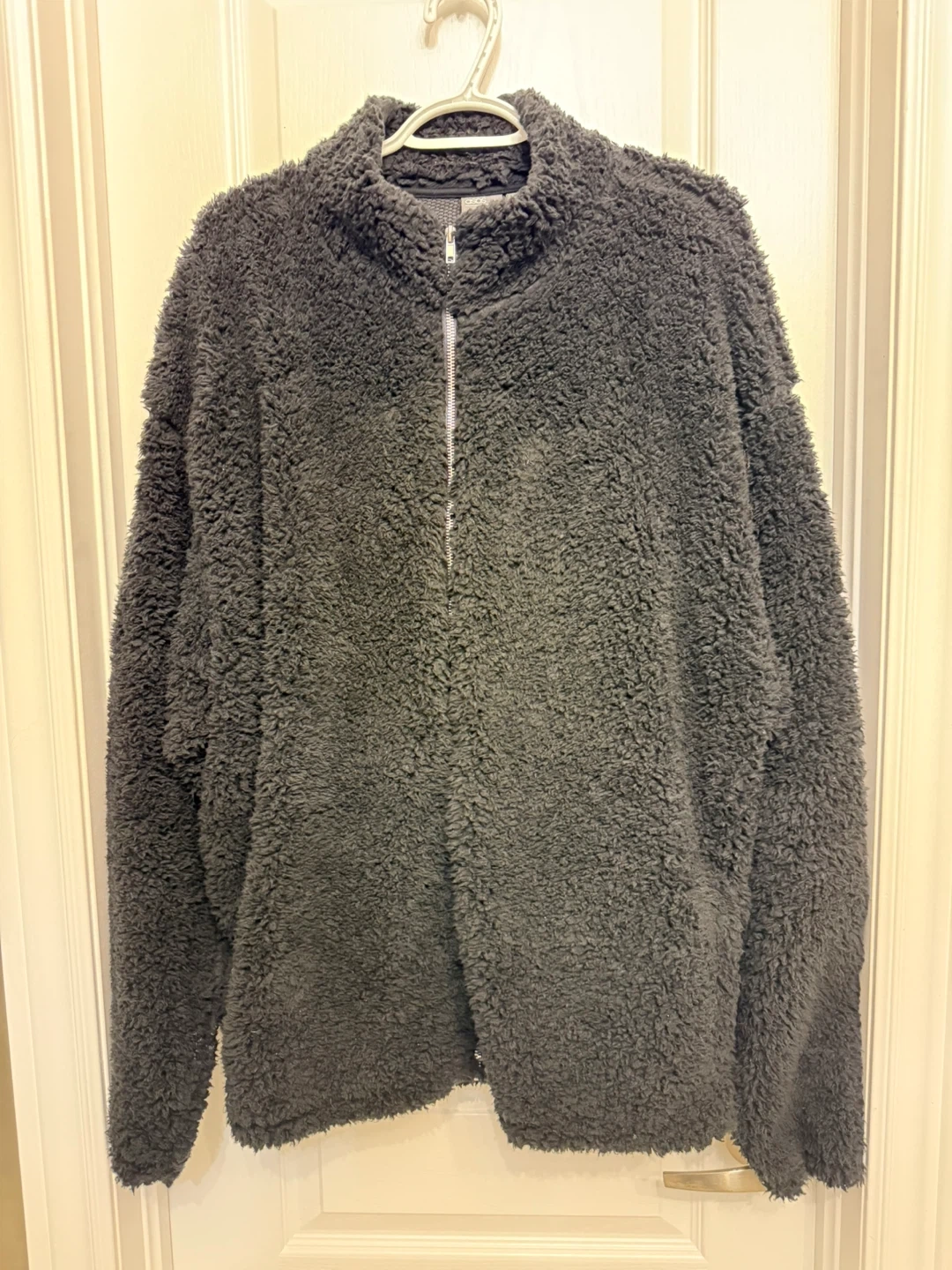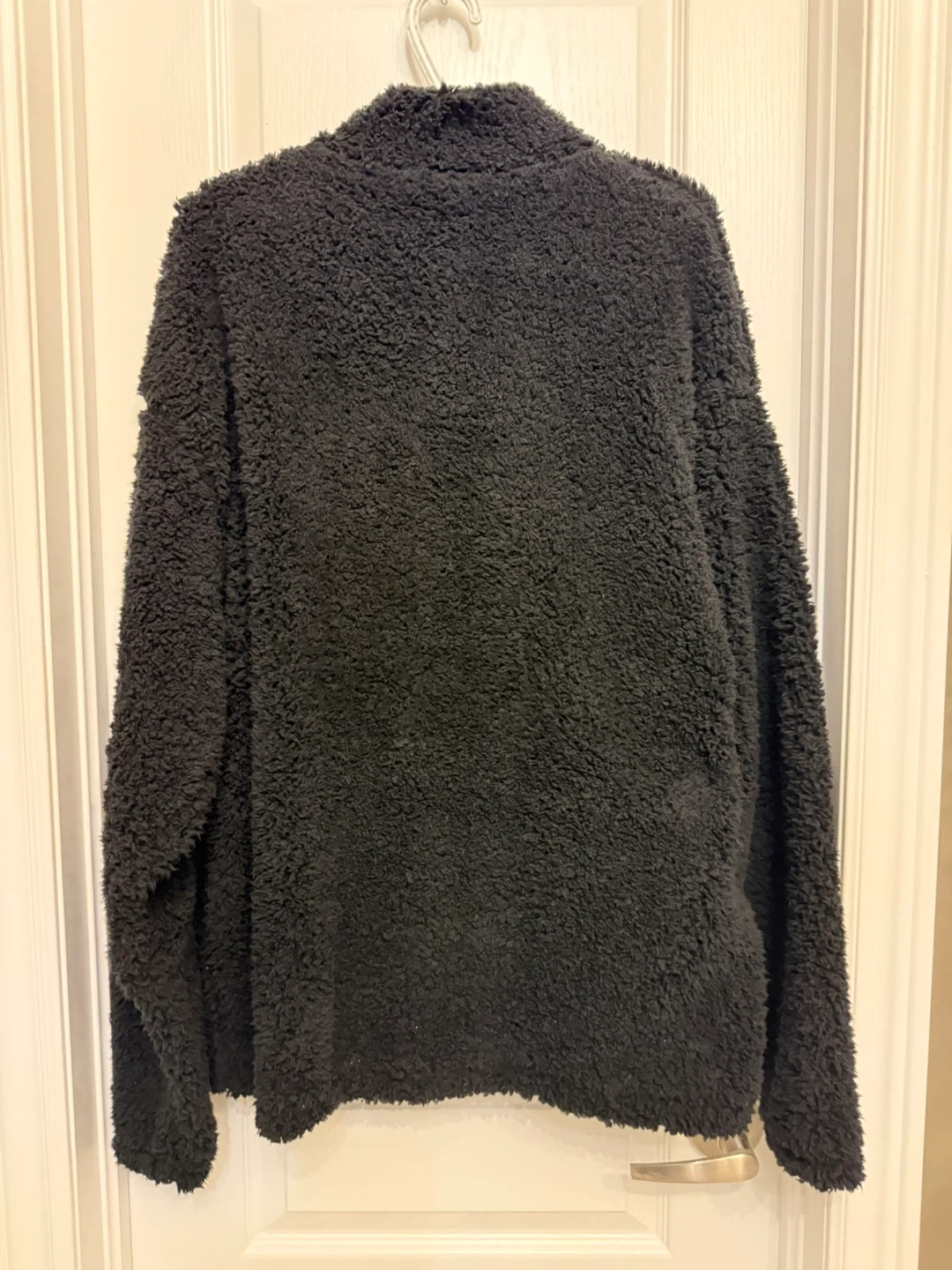 Cozy ASOS sherpa pullover in size medium! It's a super soft and comfortable piece, perfect for layering during the colder months. The black colour makes it versatile to match with anything. Great for casual wear or lounging at home