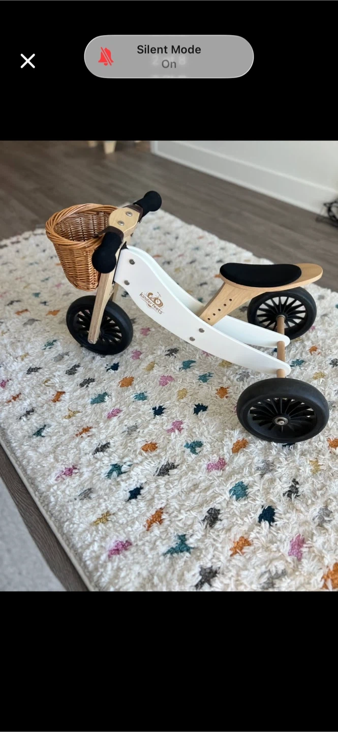 I’m selling a Kinderfeets balance bike with 3 wheels, no pedals.