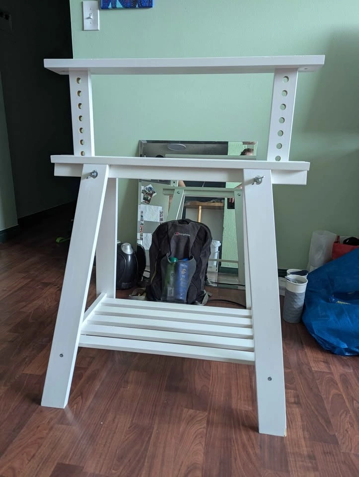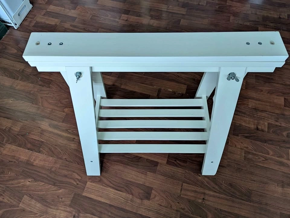 Trestle style table legs. Adjustable height and angle. Min Height: 71cm, Max Height: 93cm.
