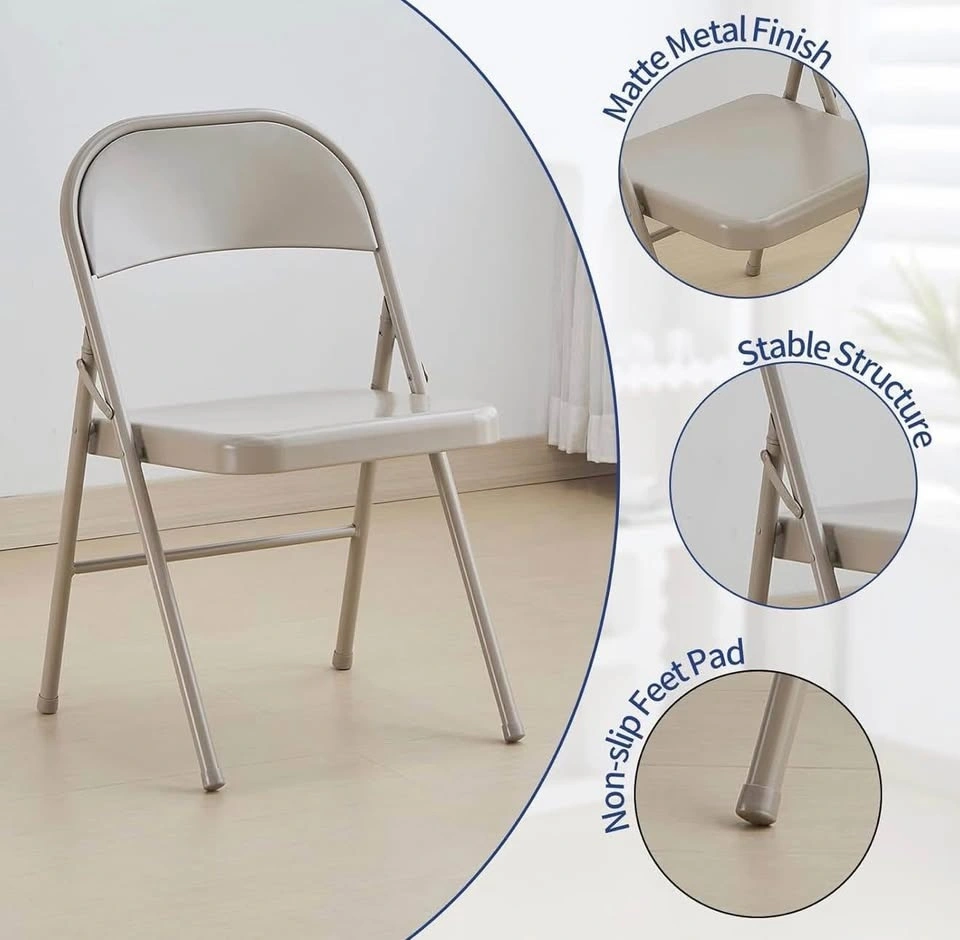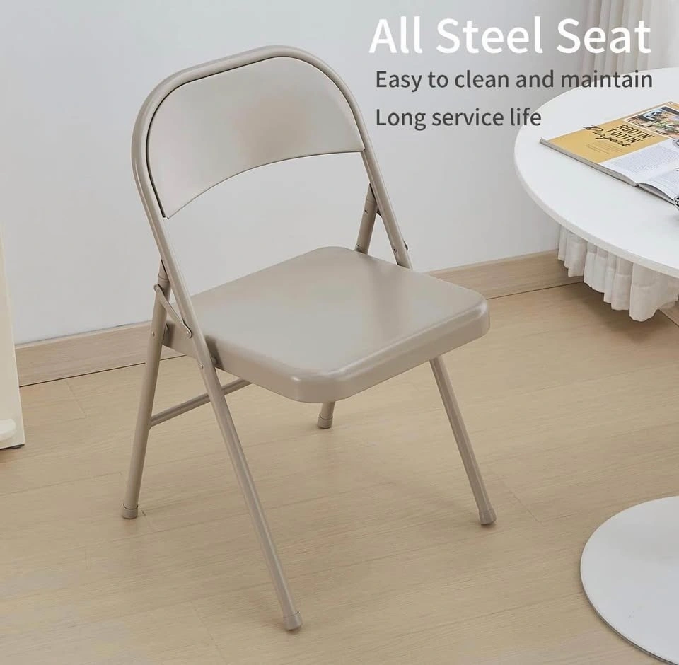 Our beige metal folding chairs feature a matte surface that adds a touch of sophistication to any setting. The neutral color easily complements various decors, making these chairs versatile for both formal and casual occasions. They effortlessly blend in, enhancing the visual appeal of your space.