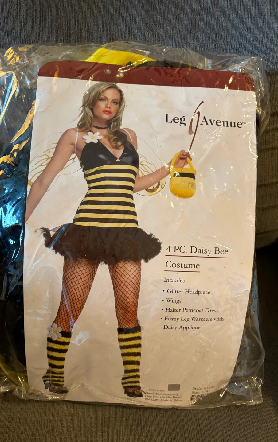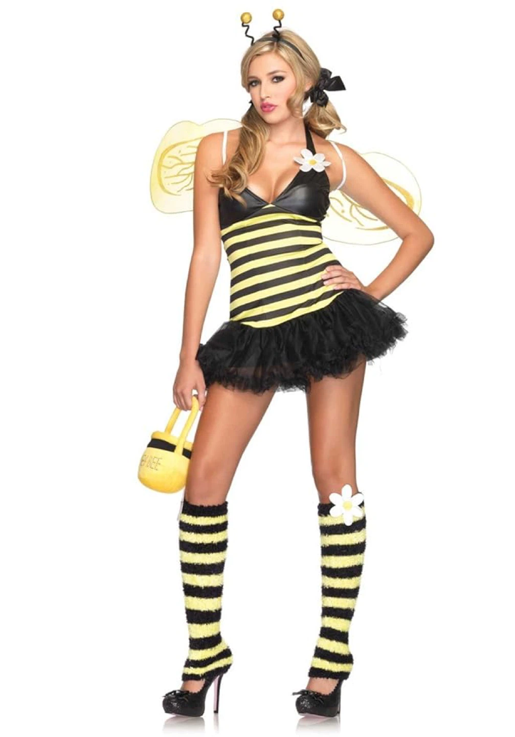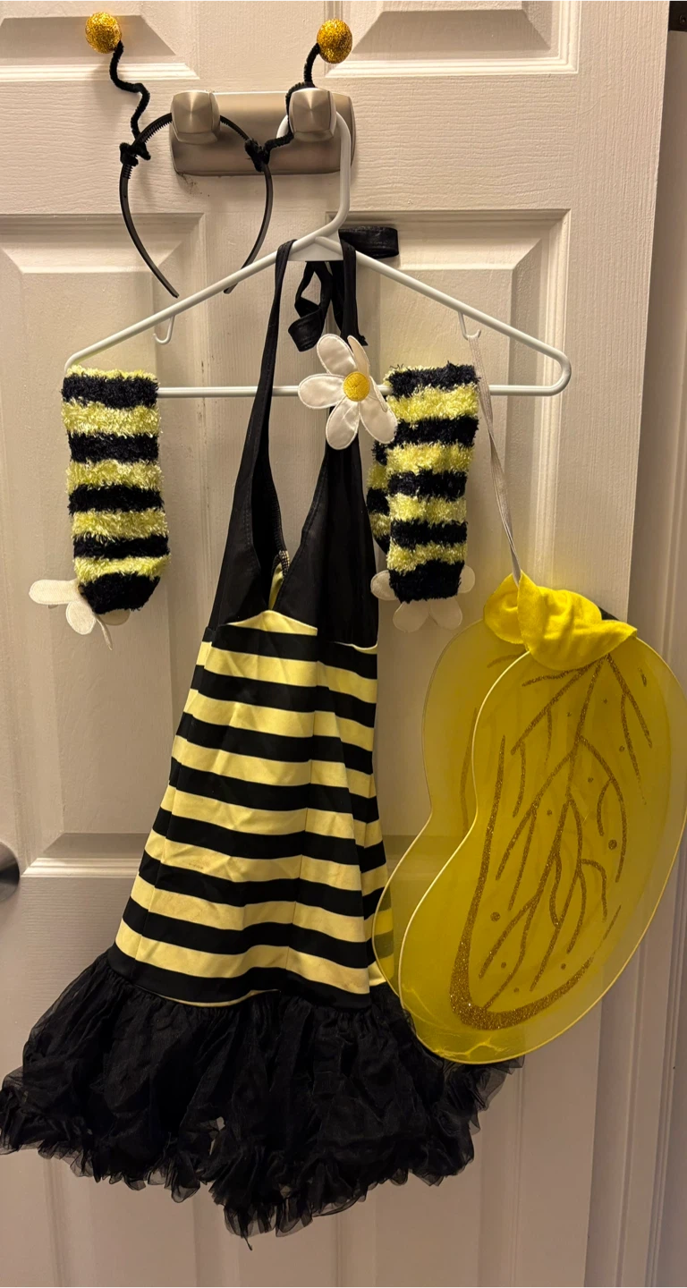 Selling an Adult Leg Avenue 4 piece Bee Costume. Includes: antenna headpiece, wings, halter petticoat dress, and fuzzy leg warmers.