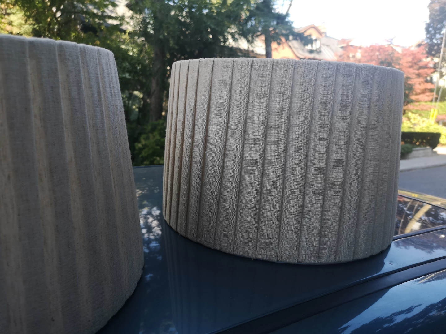 Selling a pair of beige pleated lamp shades. They are in great condition and ready to brighten up your space! The pleated design adds a touch of elegance to any room