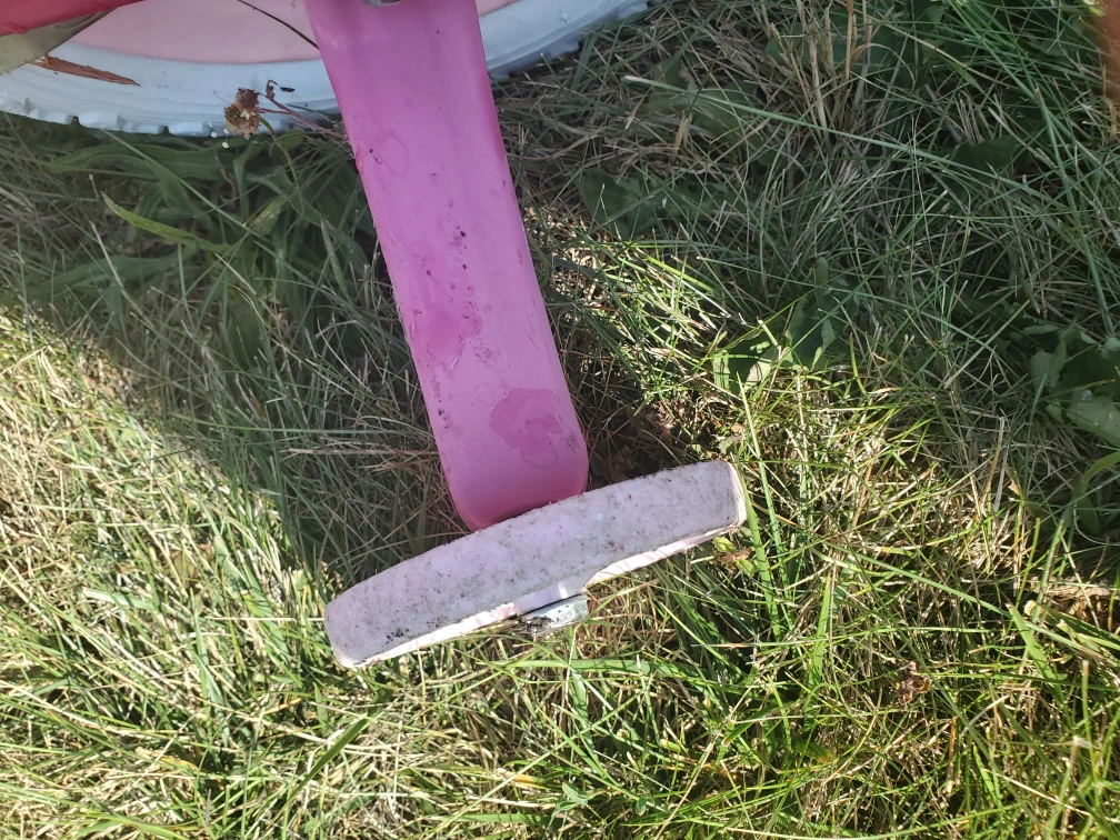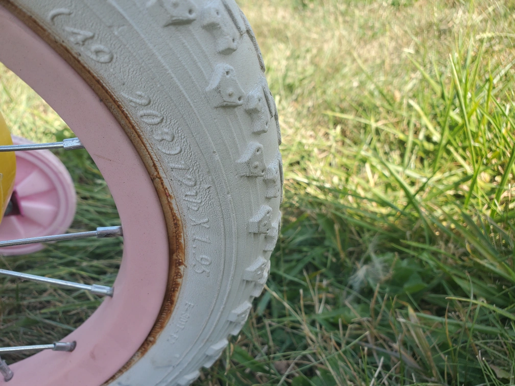 Selling a used pink kids bike. It has some wear and tear, especially on the seat, but is still functional. Perfect for a young child learning to ride with the included training wheels. The tires are size 12 1/2 x 2.25
