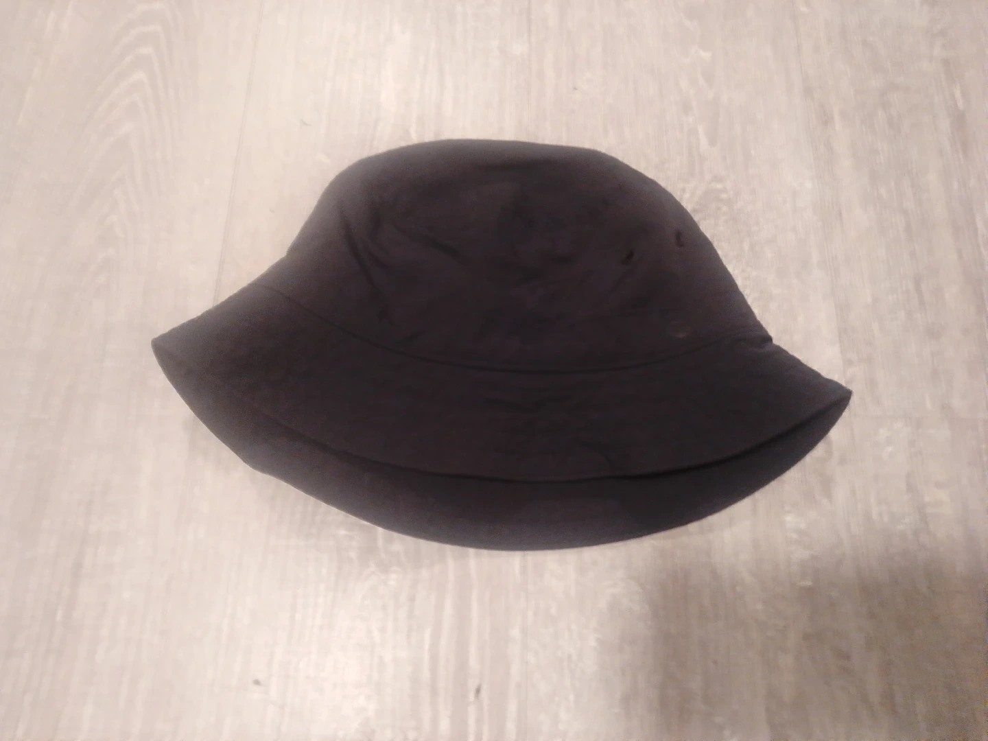 A classic black bucket hat. It's made of a soft fabric and has a comfortable fit. This hat is great for sunny days! Brand is Lululemon. 250 986 6851