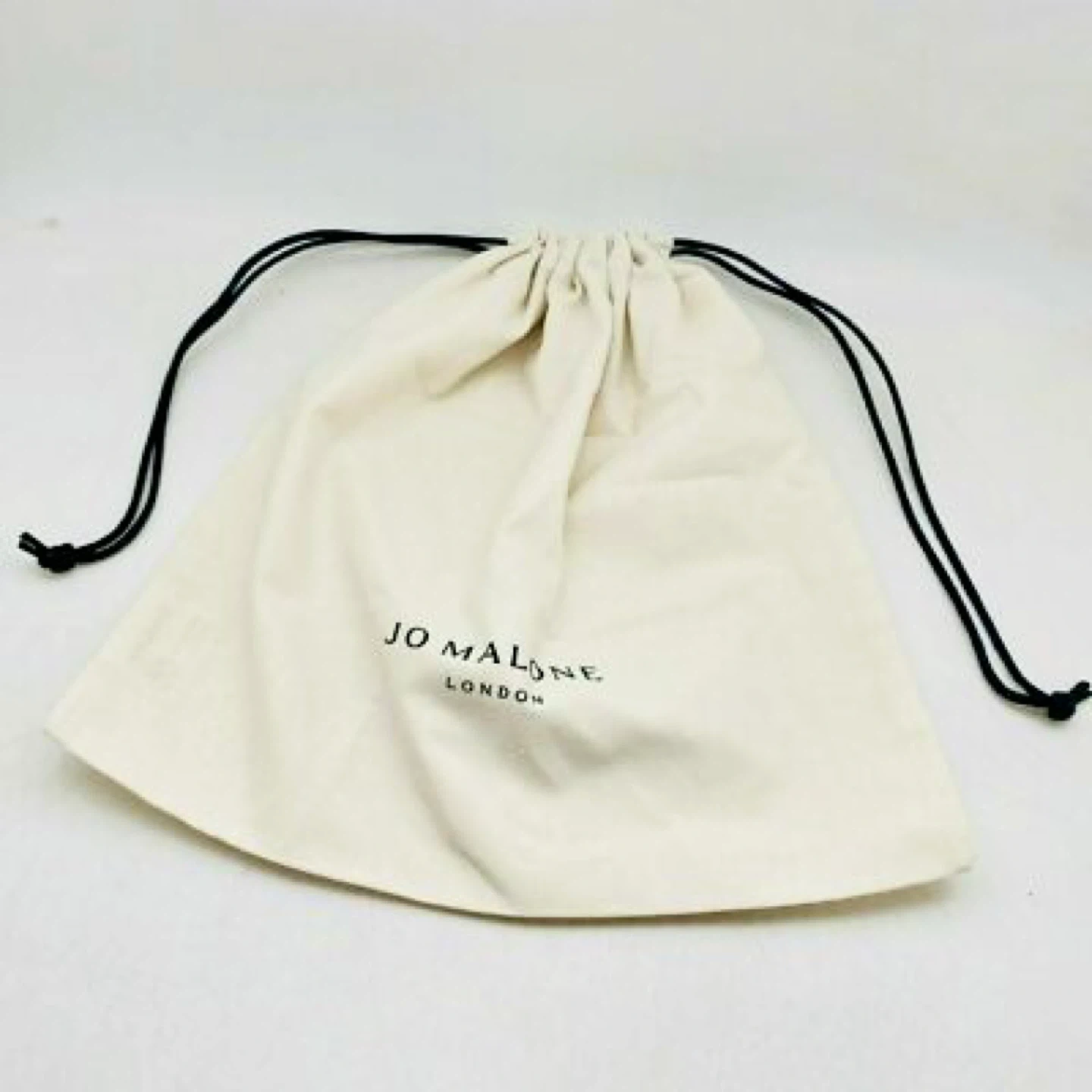 Selling a Jo Malone London drawstring bag. It's in great condition and perfect for storing your favourite items or protecting them during travel. The bag is made of a soft, off-white material and features the Jo Malone London logo.