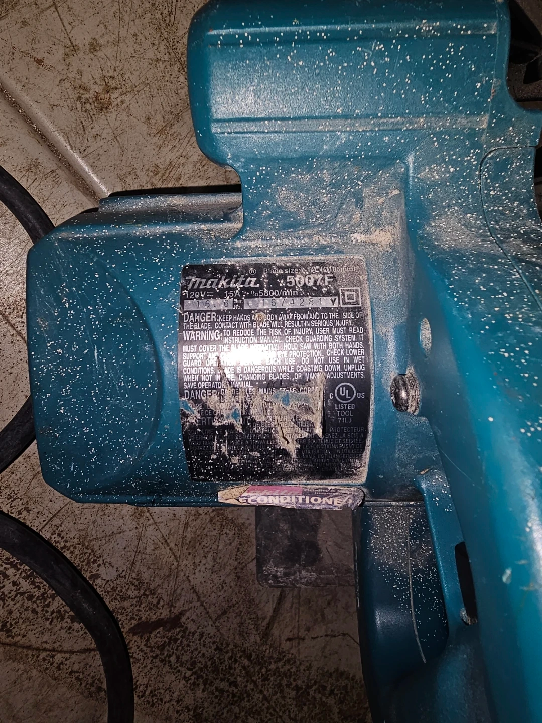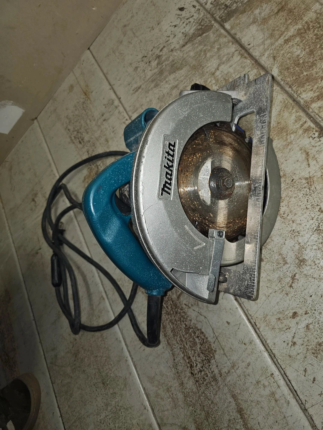 This is aused Makita 5007F circular saw. It has a 15 Amp motor and a 7-1/4 inch blade capacity. Power cord included. Works well for various cutting tasks.