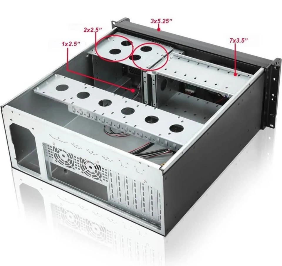 Brand new RackChoice 4U Rackmount Server Chassis — perfect for high-performance gaming builds, servers, or custom workstation setups. Spacious and versatile design with support for: 3 x 5.25” drive bays, 7 x 3.5 ” drive bays, and 3 x 2.5” drive bays. Built for maximum storage capacity and powerful configurations. Ideal for gaming enthusiasts, home labs, media servers, or professional workstation builds. Durable construction with excellent airflow potential for high-performance components.