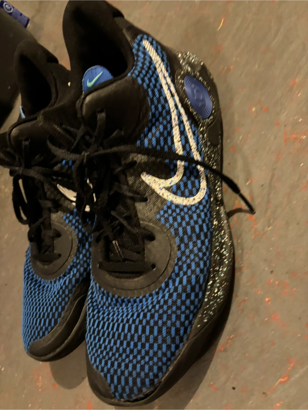 Selling a pair of Nike KD basketball shoes in size 11.5, blue and black colorway. Shoes are in used condition with visible signs of wear, but still have life left in them.