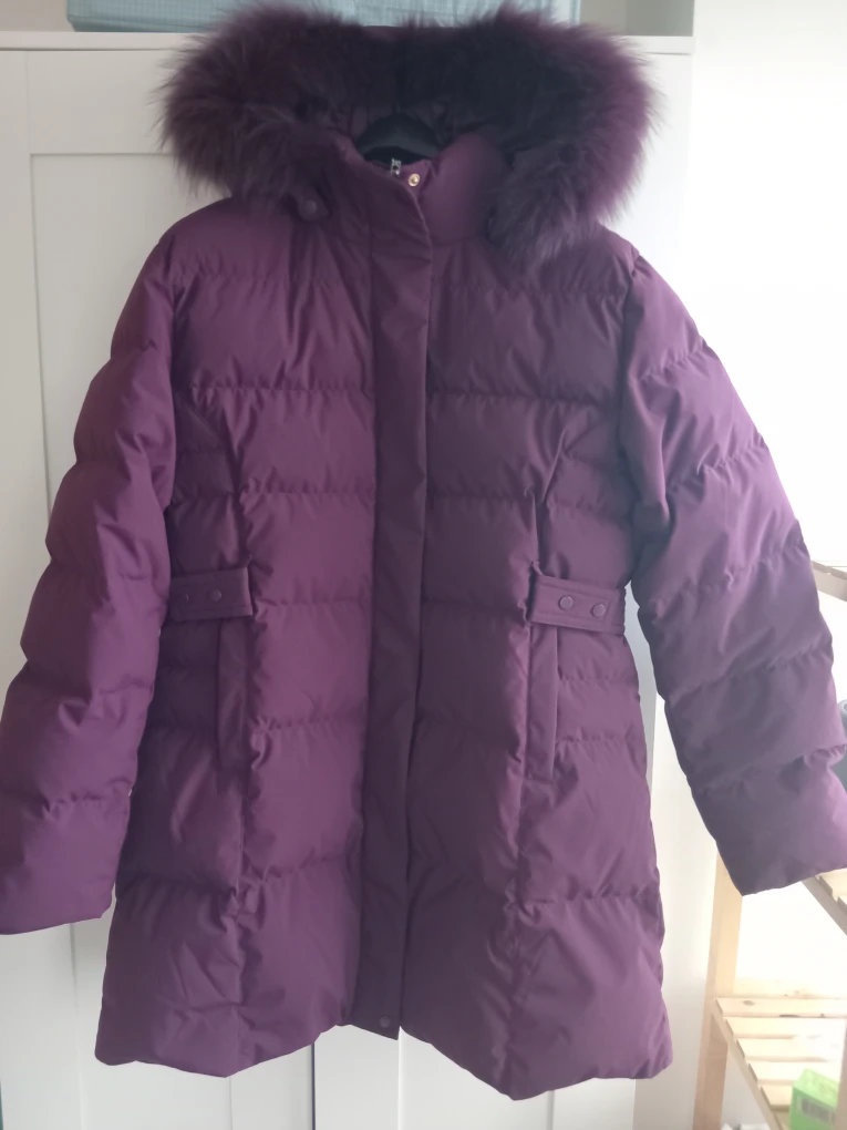 Selling a cozy purple puffer jacket! It has a stylish fur hood to keep you warm during those chilly days. The jacket appears to be in great condition and is perfect for staying snug and fashionable this season