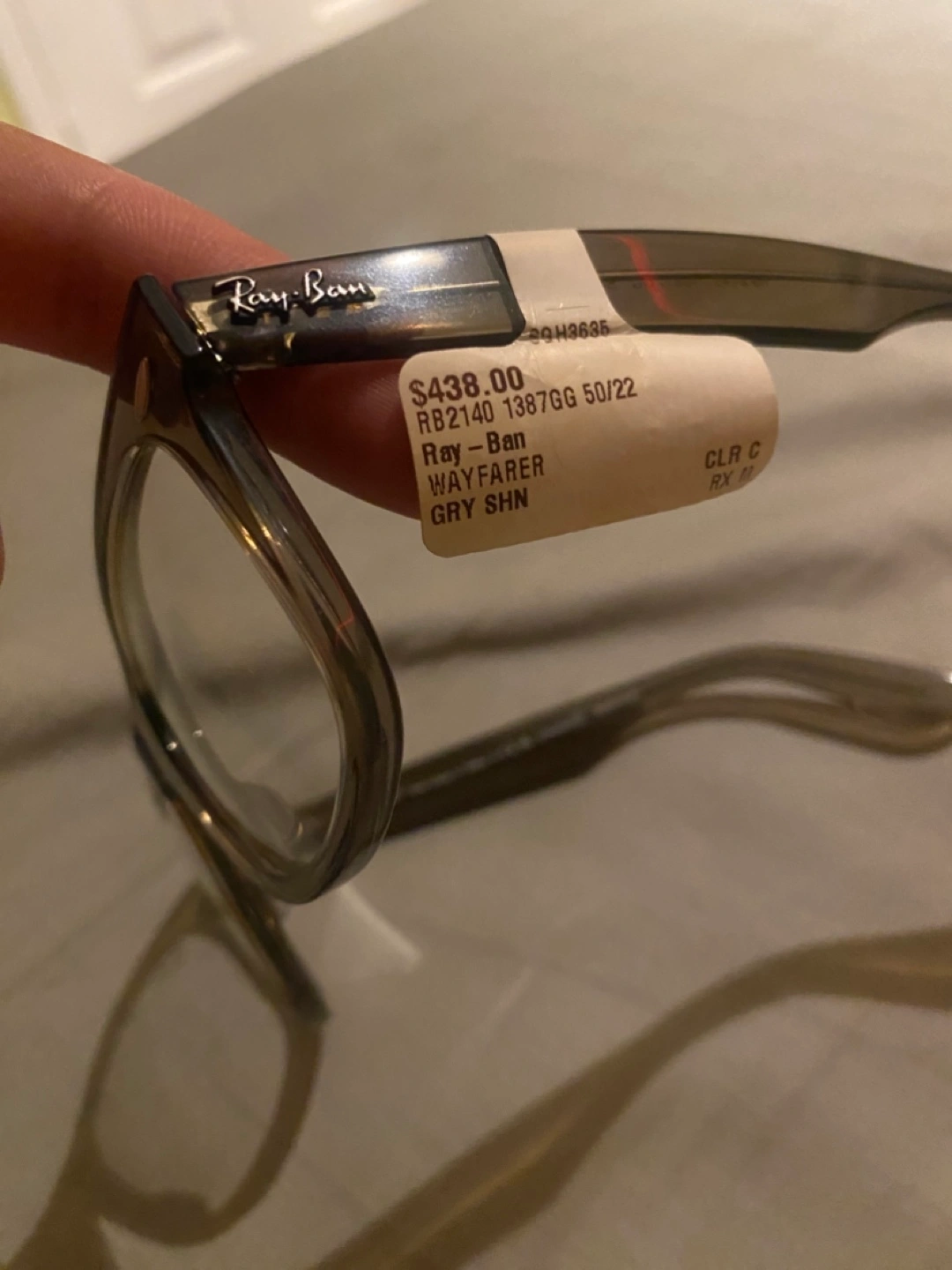 Selling a pair of Ray-Ban Wayfarer sunglasses, model RB2140 in a grey shiny colour (GRY SHN). They are size 50/22. Originally bought for $438!