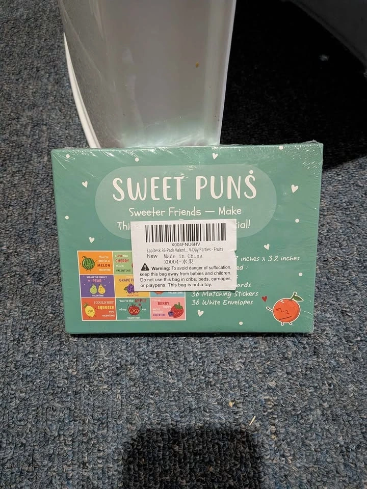Buy & Sell36 Pcs Fruit Pun Valentine Cards w/ Stickers & Envelopes36 Pcs Fruit Pun Valentine Cards w/ Stickers & Envelopes$15Brand new. Final sale.WHERE TO MEETCheck LocationView MapSELLERverifiedMiss AFiddlesticks750 reviews0 chats·0 favorites·1 viewsSEND CHAT TO SELLERHi Miss A! I’m interested in your listing.Hi Miss A! I’m interested in your listing.Get the Karrot app to chatSign In to chat