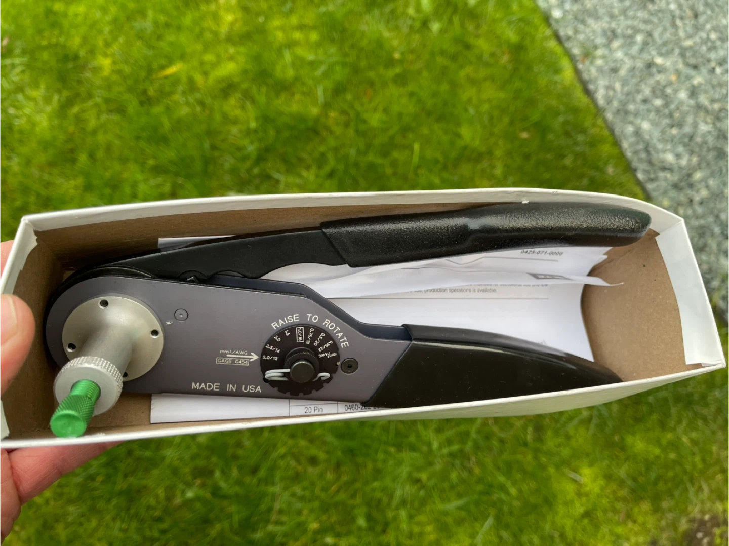Brand new in box never used Deutsch crimp tool. Crimps all sizes of Deutsch connectors. A must in a mechanics or electricians tool set.