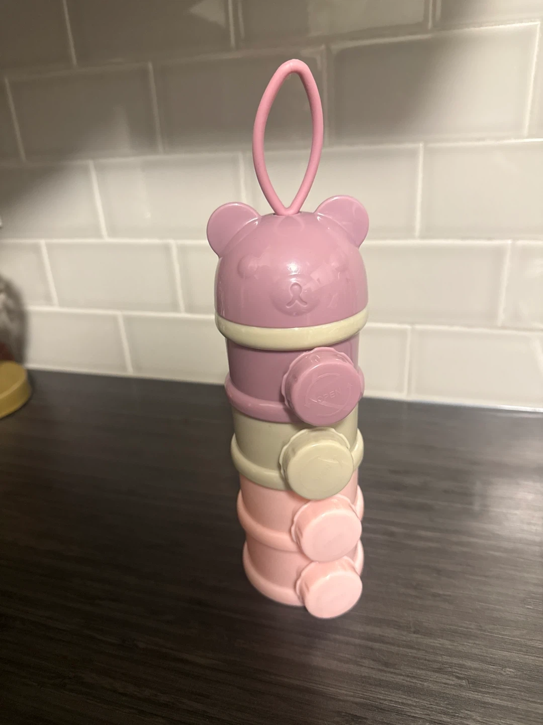 Stackable Baby Formula Dispenser - Pink Bear