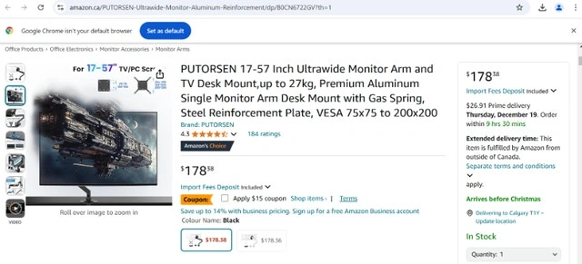 Original price: 178.38. New in box. Heavy duty monitor arm that supports up to 57 inch/59.4 lbs screens. Have multiple available in black and white
