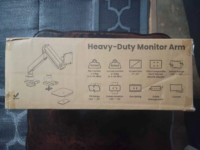 Original price: 178.38. New in box. Heavy duty monitor arm that supports up to 57 inch/59.4 lbs screens. Have multiple available in black and white