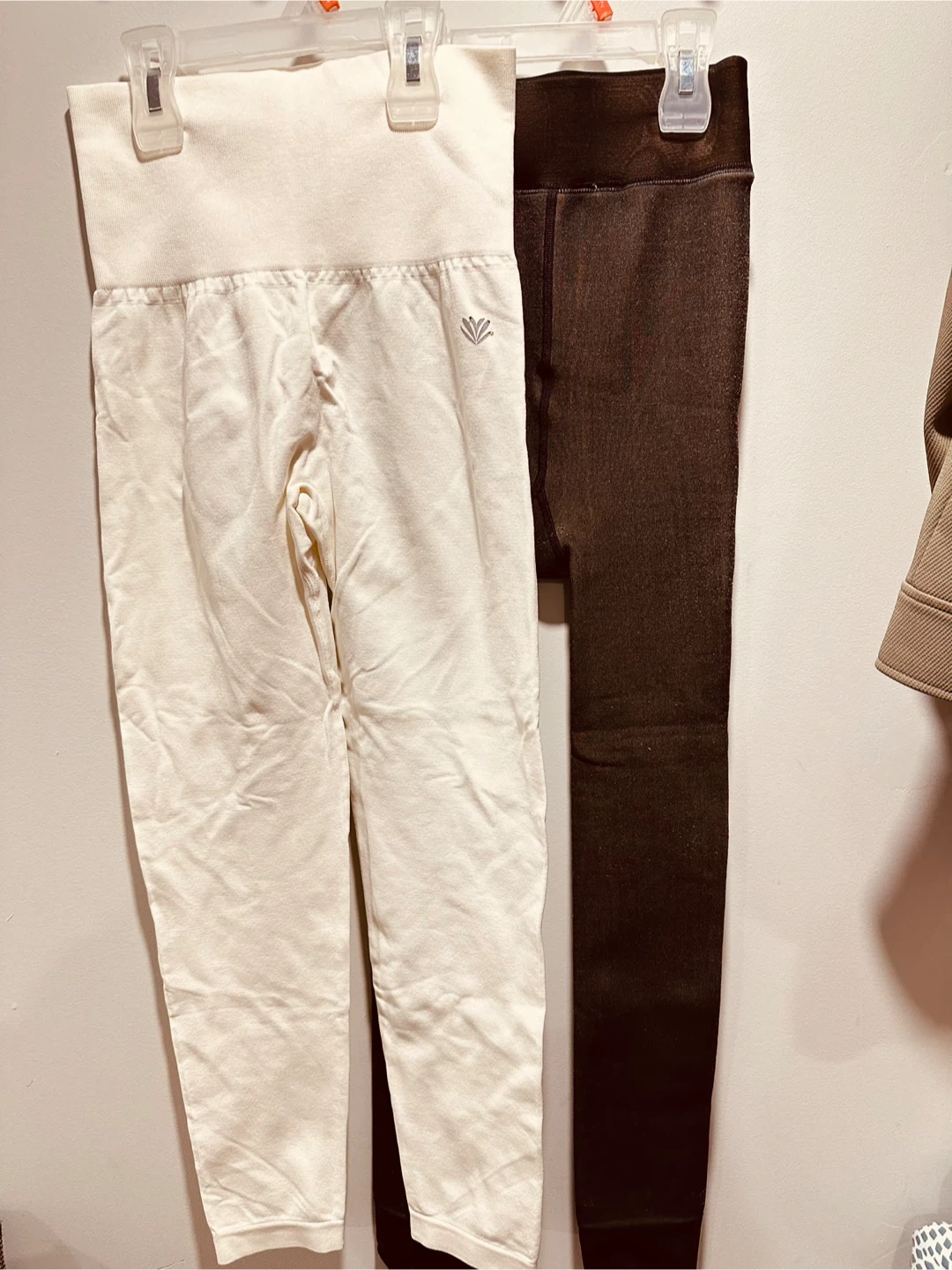 These are two pairs of seamless leggings from Forever 21. One pair is a cream colour and the other is a dark brown. They're comfortable for everyday wear.