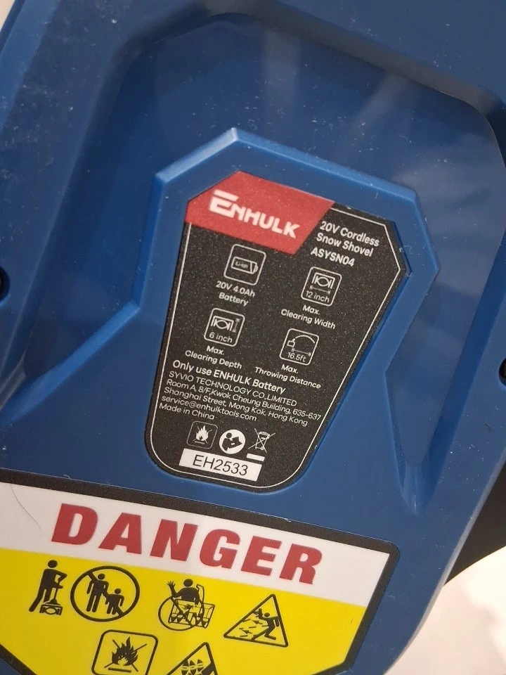 This Enhulk electric snow shovel, with its 20V battery and 12.2-inch clearing width, is ready to make snow removal a breeze. ❄️🌬️ This cordless snow blower includes a 4-Ah battery, ensuring you can tackle your driveway, sidewalk, or patio without the hassle of cords. 🏡🚶♀️ This item is in new condition. ✨
