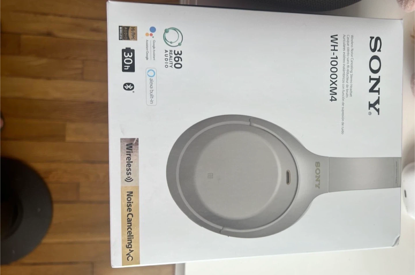 These are the Sony WH-1000XM4 wireless noise cancelling headphones. They feature 30 hours of battery life and Hi-Res Audio. Includes original box and carrying case. noise cancellation works amazing! Charger is included as well.