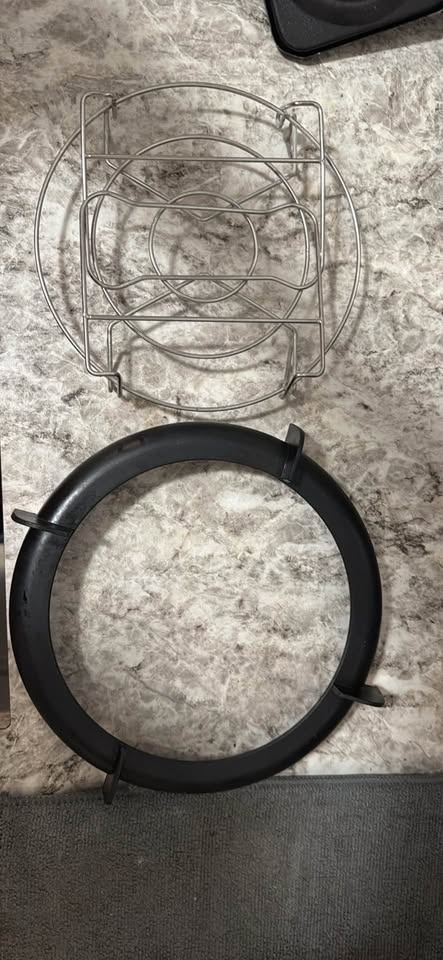 Versatile Instant Pot Duo Crisp + Air Fryer with stainless steel inner pot. Functions include pressure cook, air fry, roast, bake, broil, and more. Super handy for quick meals! Comes with all accessories and is working perfectly. Selling because I'm moving back to India.