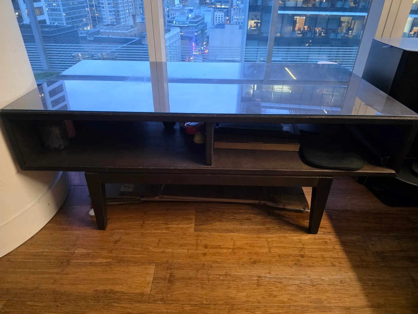 Dark Wood Media Console with Glass Top